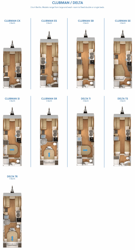 Lunar as we know, no longer produce caravans however, you will see a huge range of models in the used market still generally include a mix of 2, 4, and 6-berth caravans to suit all types of requirements, whether that is for couples or larger families. You will see layouts including island beds, single beds, side/double dinettes and even bunk beds.
