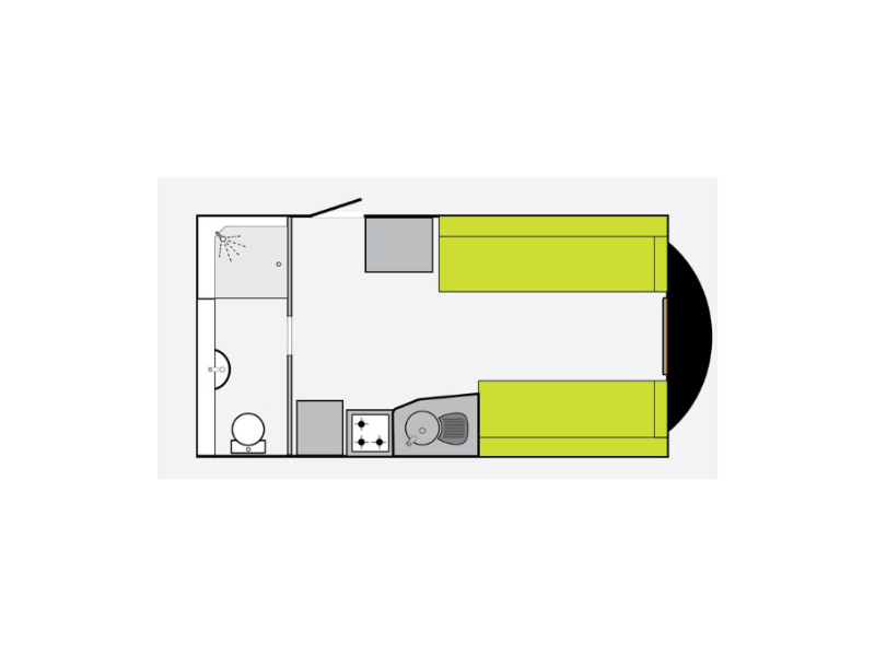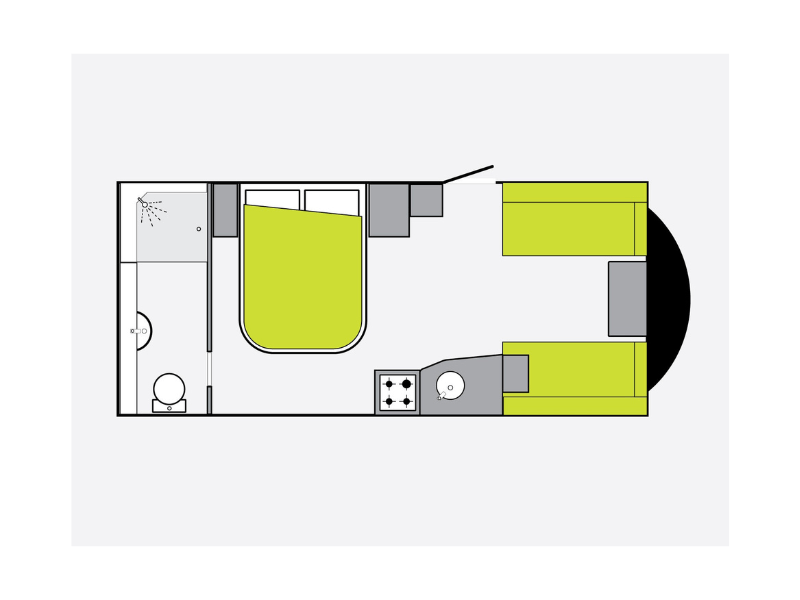 - Layout: Fixed Double Bed