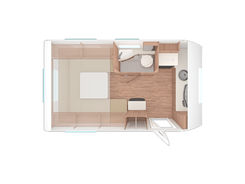 - Layout: Fixed Double Bed