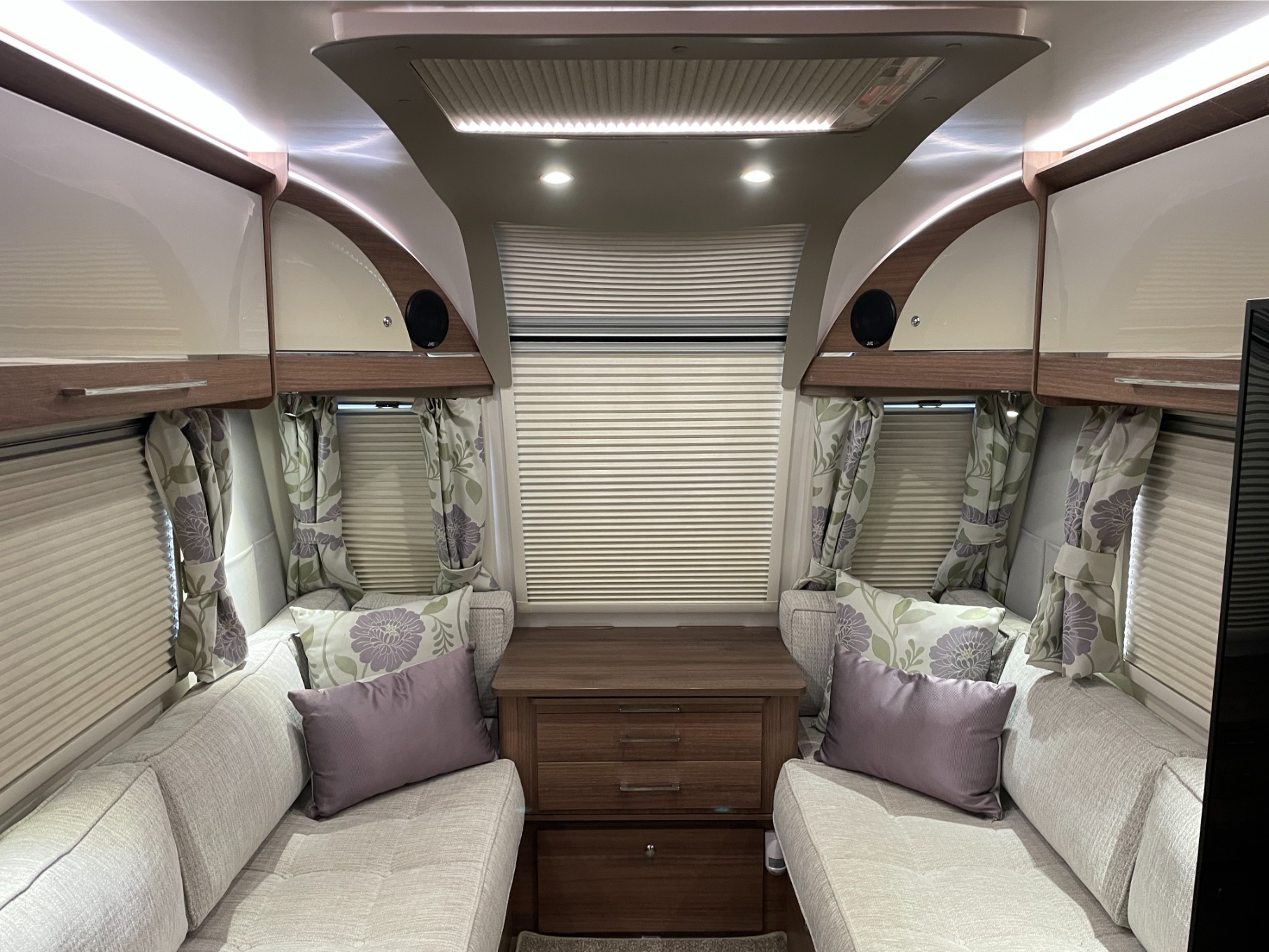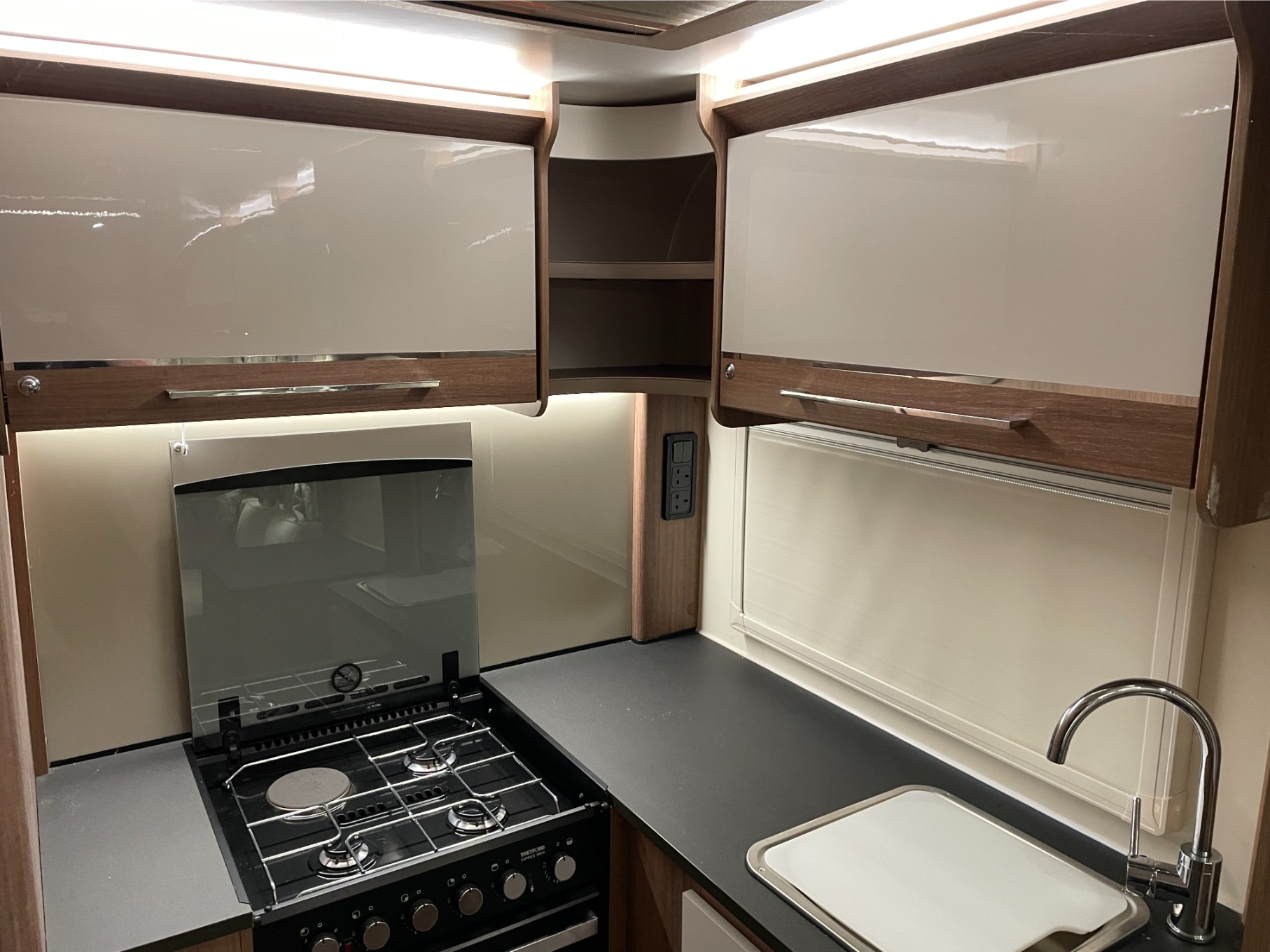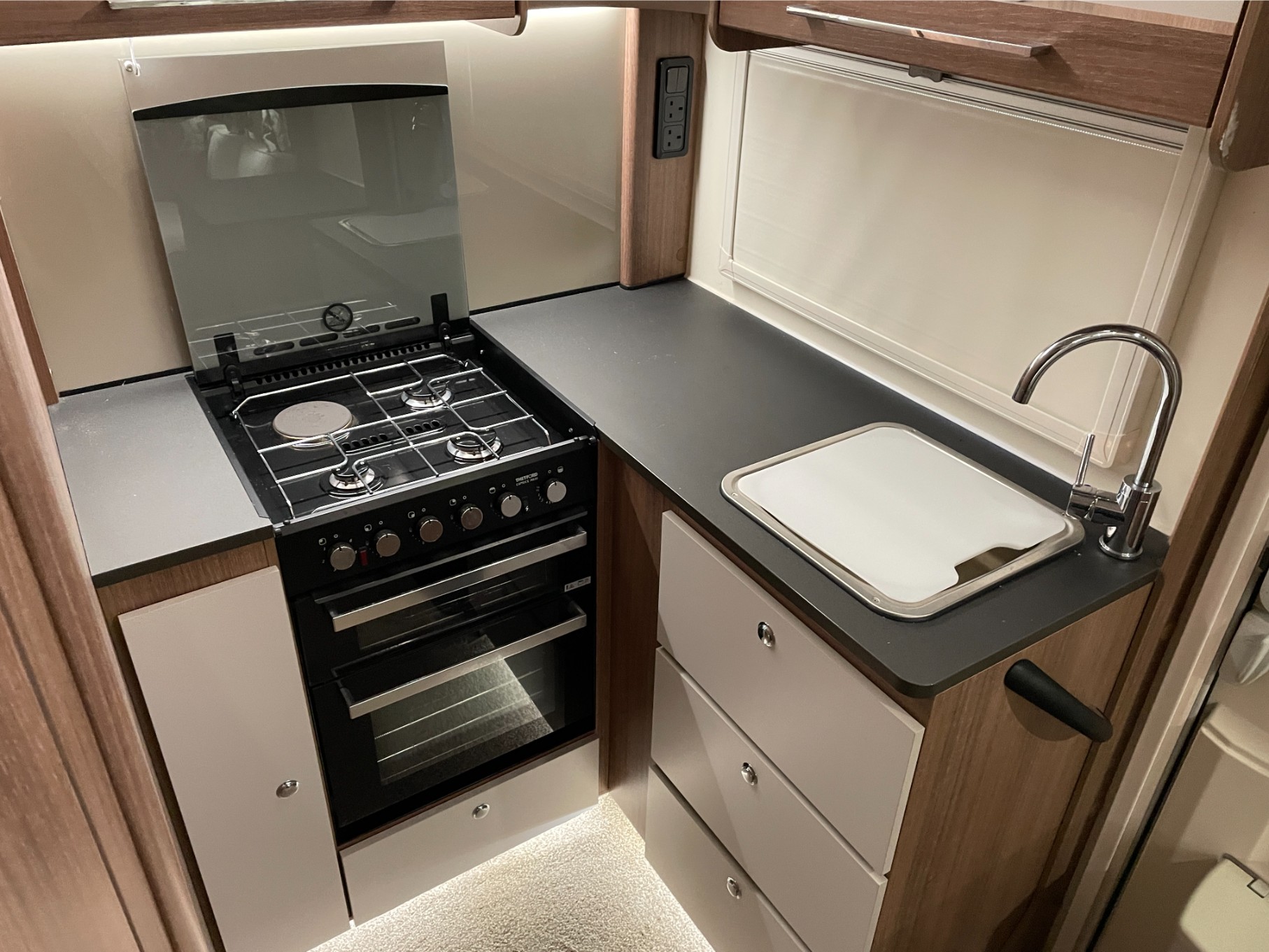 This model is loaded with thoughtful extras including an external gas BBQ point and a 230V external socket—ideal for outdoor cooking or powering accessories. Towing is smooth and confident with the Al-Ko ATC (Active Trailer Control) system, and parking is effortless thanks to the fitted motor mover.
