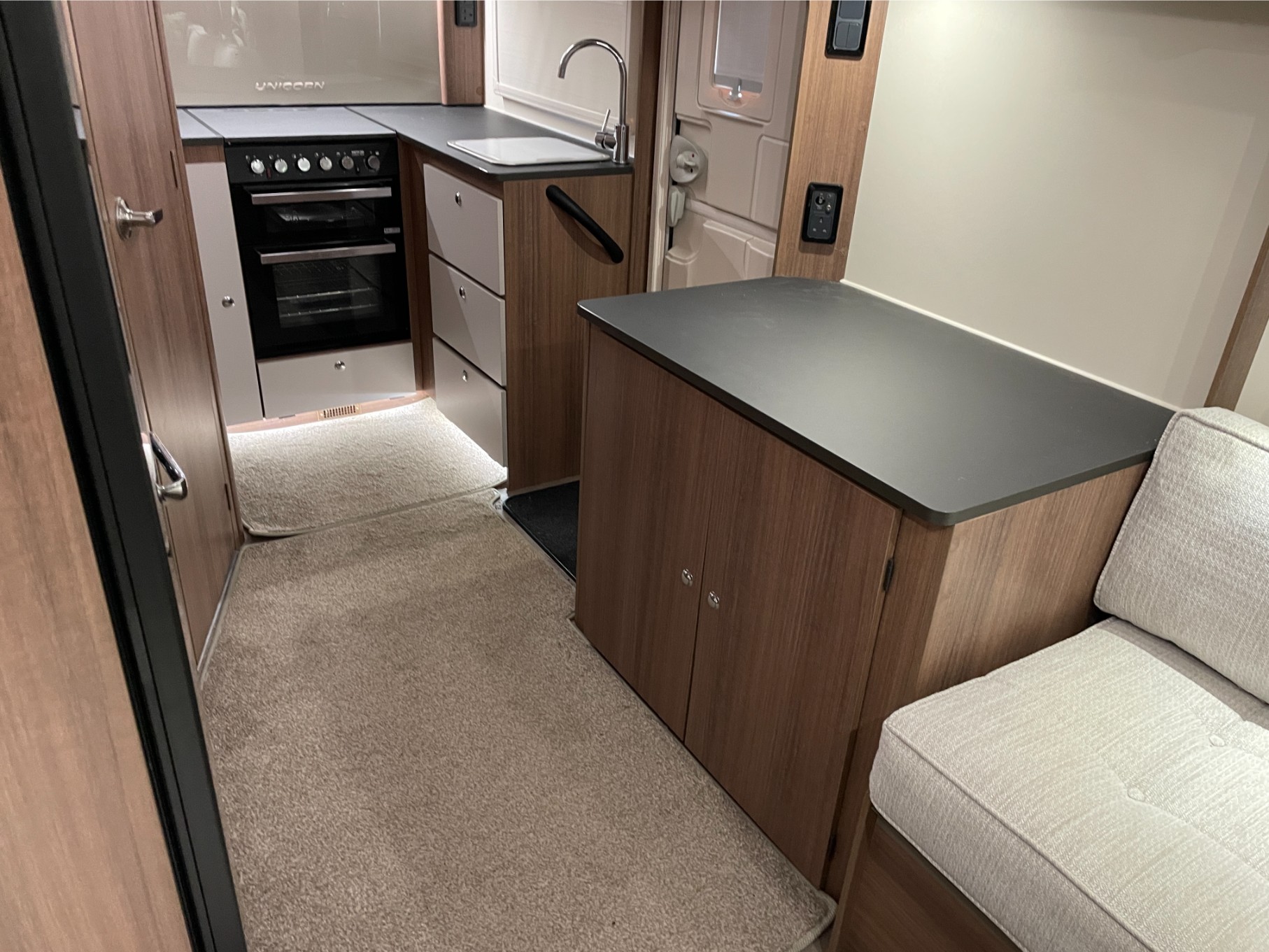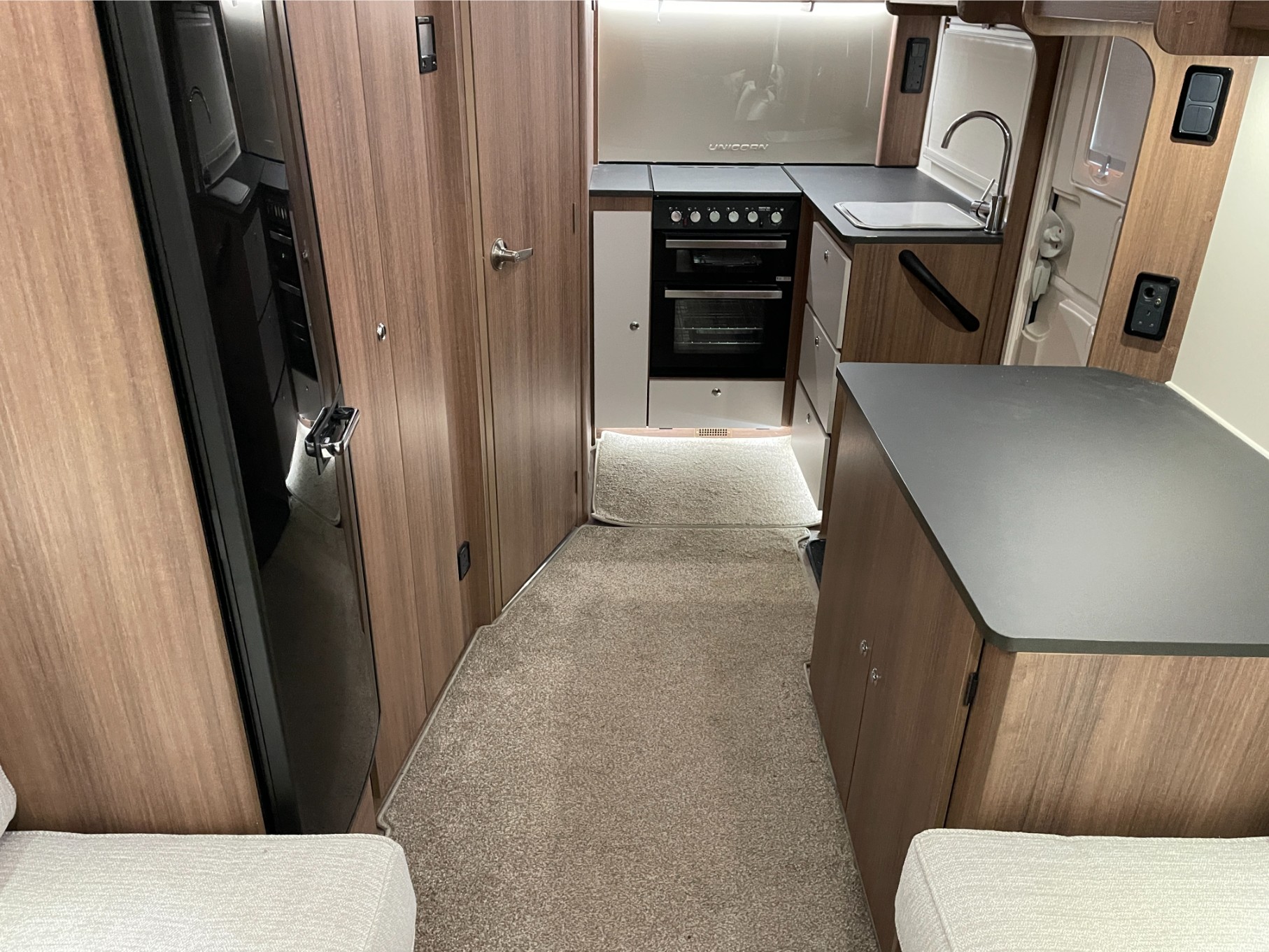 Discover adventure and comfort in the beautifully designed 2018 Bailey Unicorn Seville, a premium 2 berth caravan perfect for couples seeking stylish getaways. Featuring a practical end kitchen layout with a spacious lounge that converts into a large double bed, this caravan blends functionality with homely comfort.
