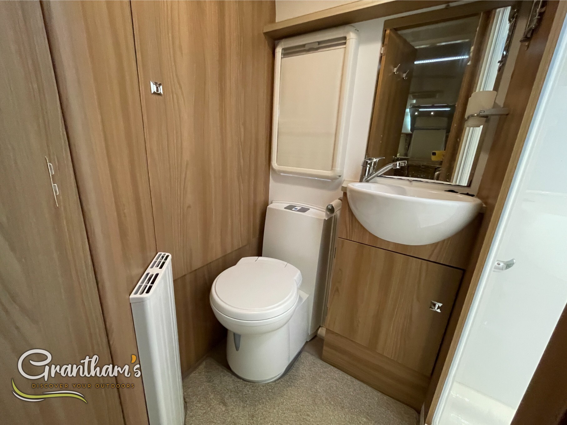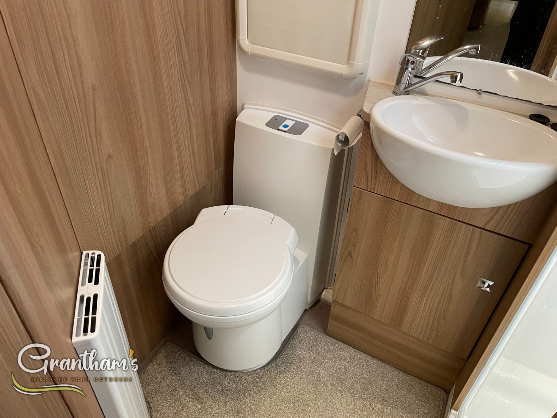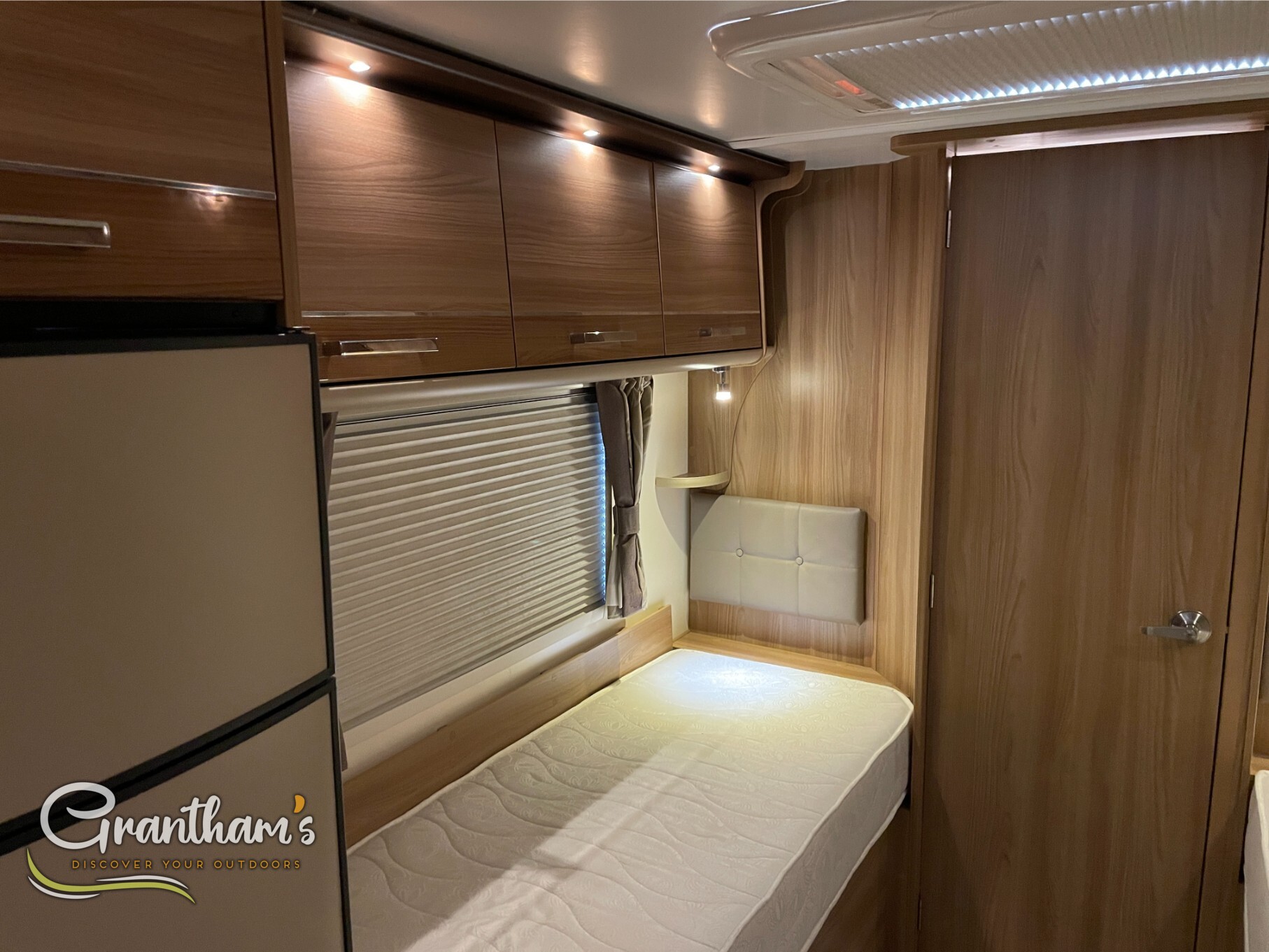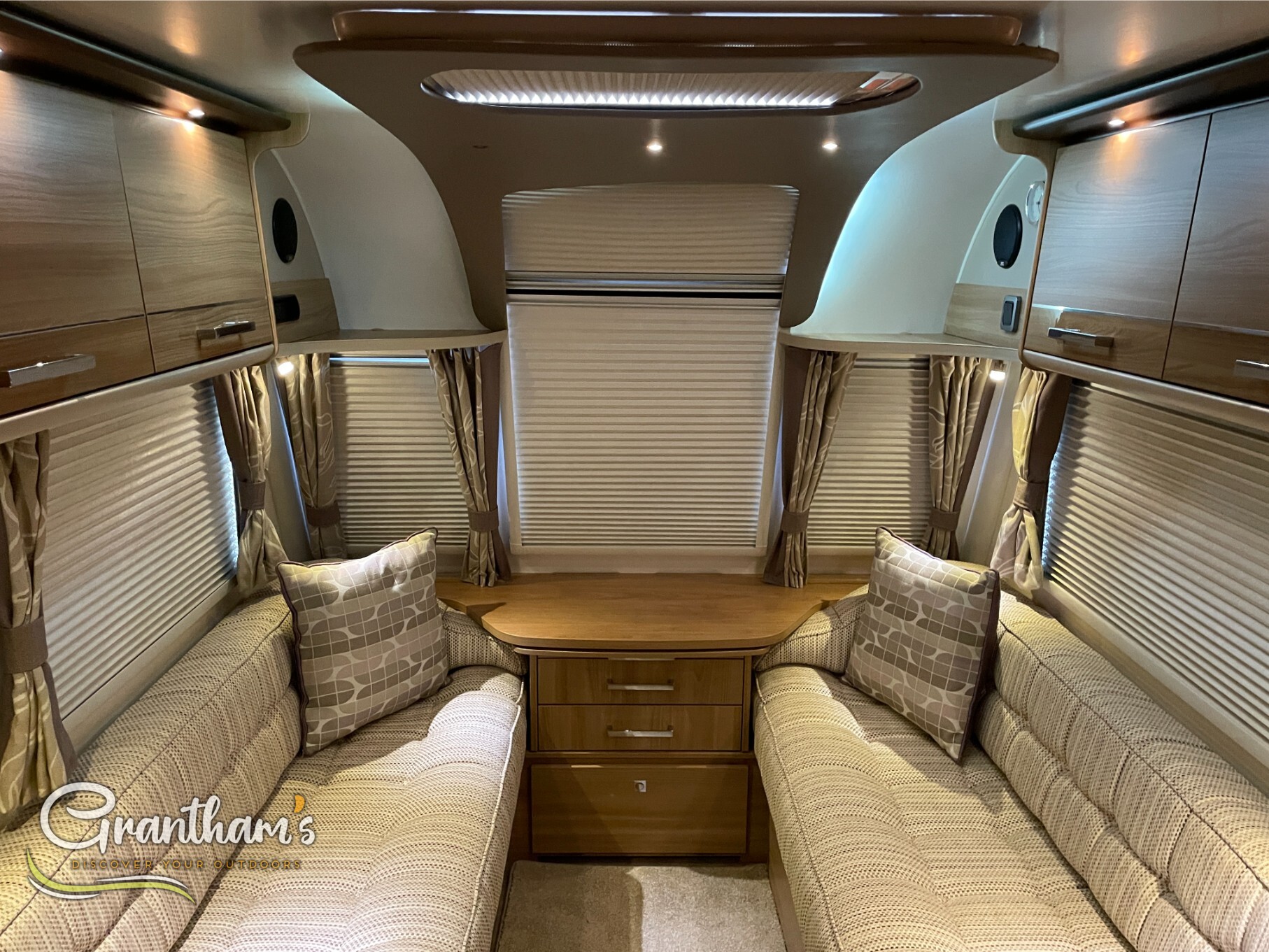 Inside, you’ll find a well-appointed kitchen, a generous lounge area that converts into a second double bed, and the standout feature – a full-width rear washroom with a separate shower and ample storage. Stay cosy all year round with the ALDE wet central heating system, providing consistent warmth just like at home.