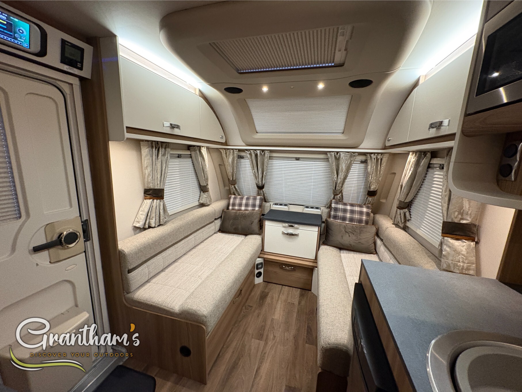 Stay cosy year-round with the Truma blown air heating system, while the roof-mounted solar panel ensures you can enjoy more off-grid getaways. With the AL-KO ATC trailer control system, you’ll tow with enhanced safety and stability, and once pitched, enjoy outdoor living with the external gas BBQ point and 240v socket – ideal for alfresco cooking and entertainment.