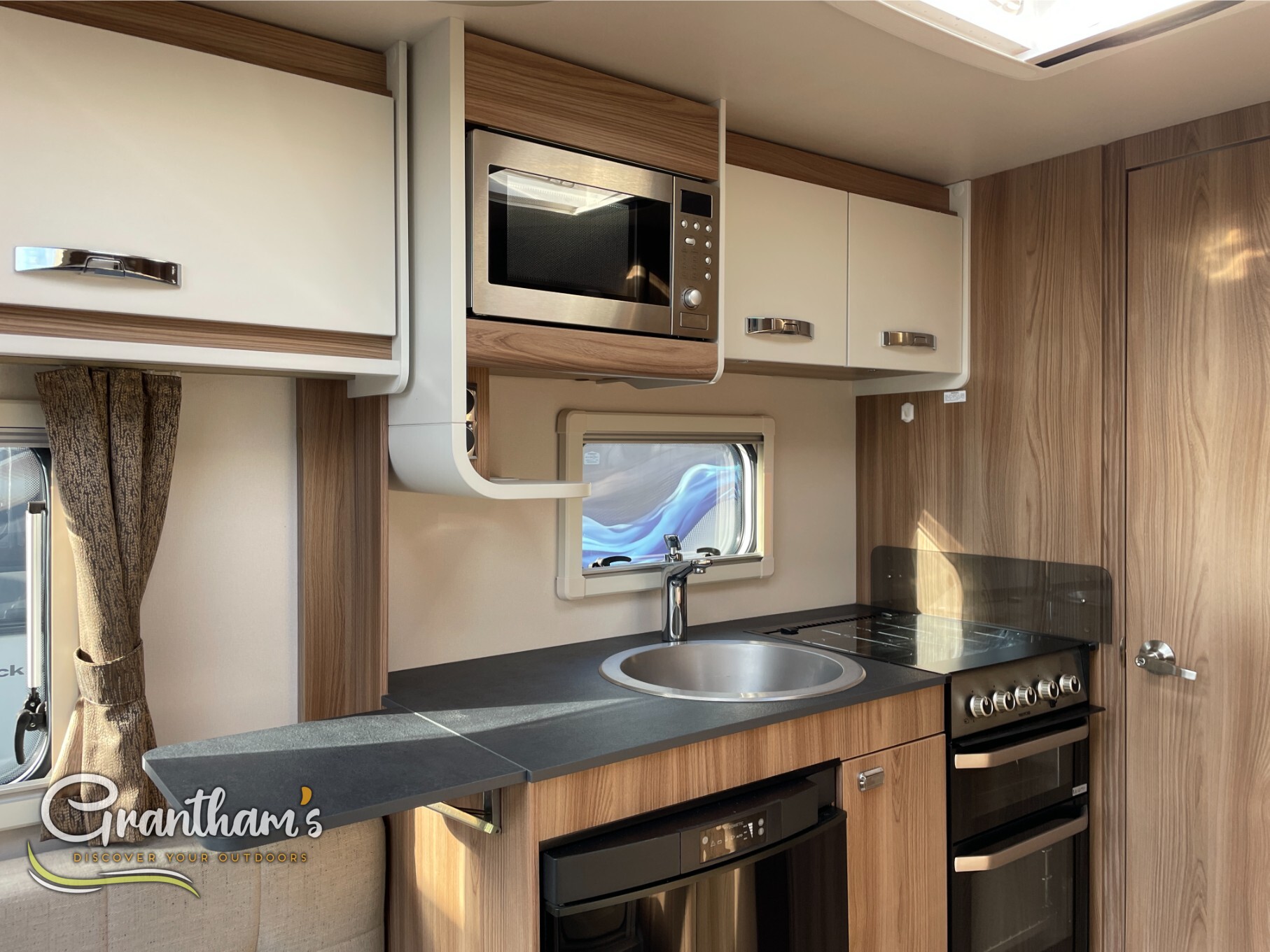 Stay cosy year-round with the efficient Truma blown air heating system, ensuring comfort in all seasons. The fully equipped kitchen includes a microwave for easy meal prep, while the external gas BBQ point and 230v socket let you enjoy al fresco dining and outdoor living with ease.