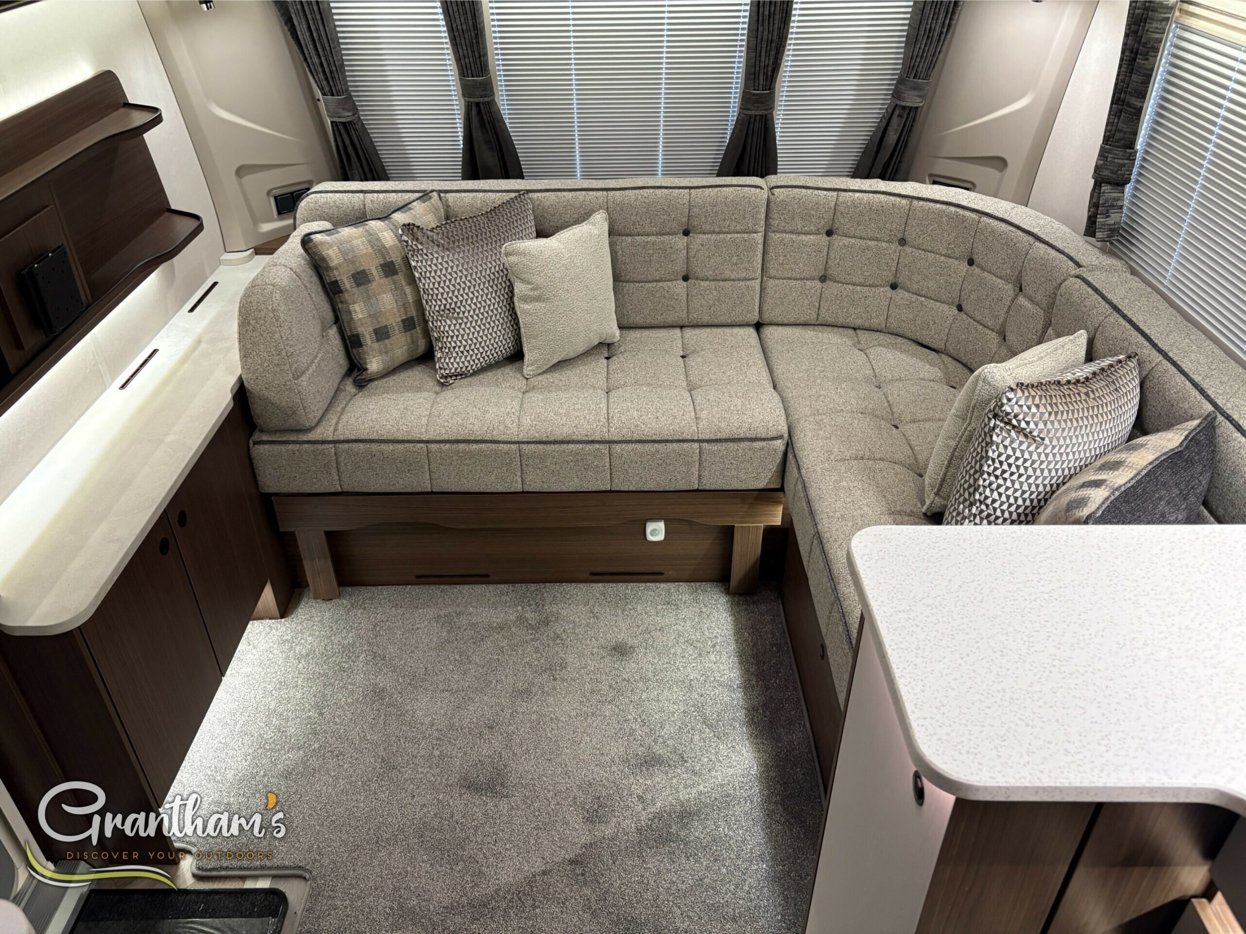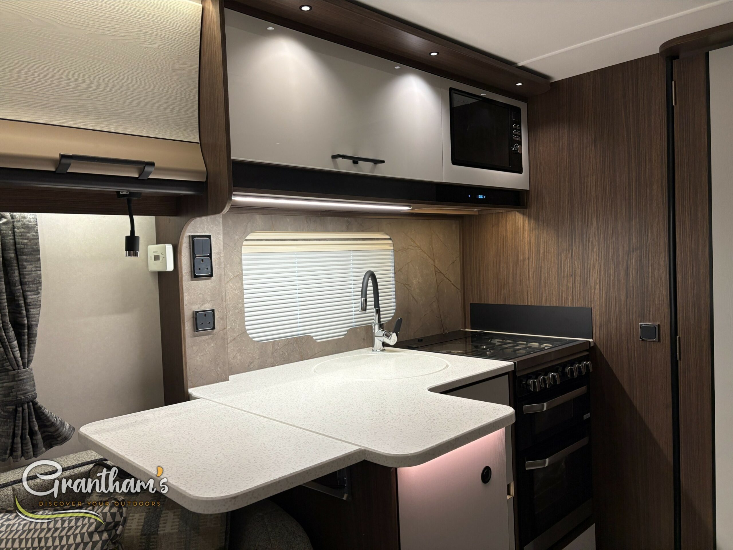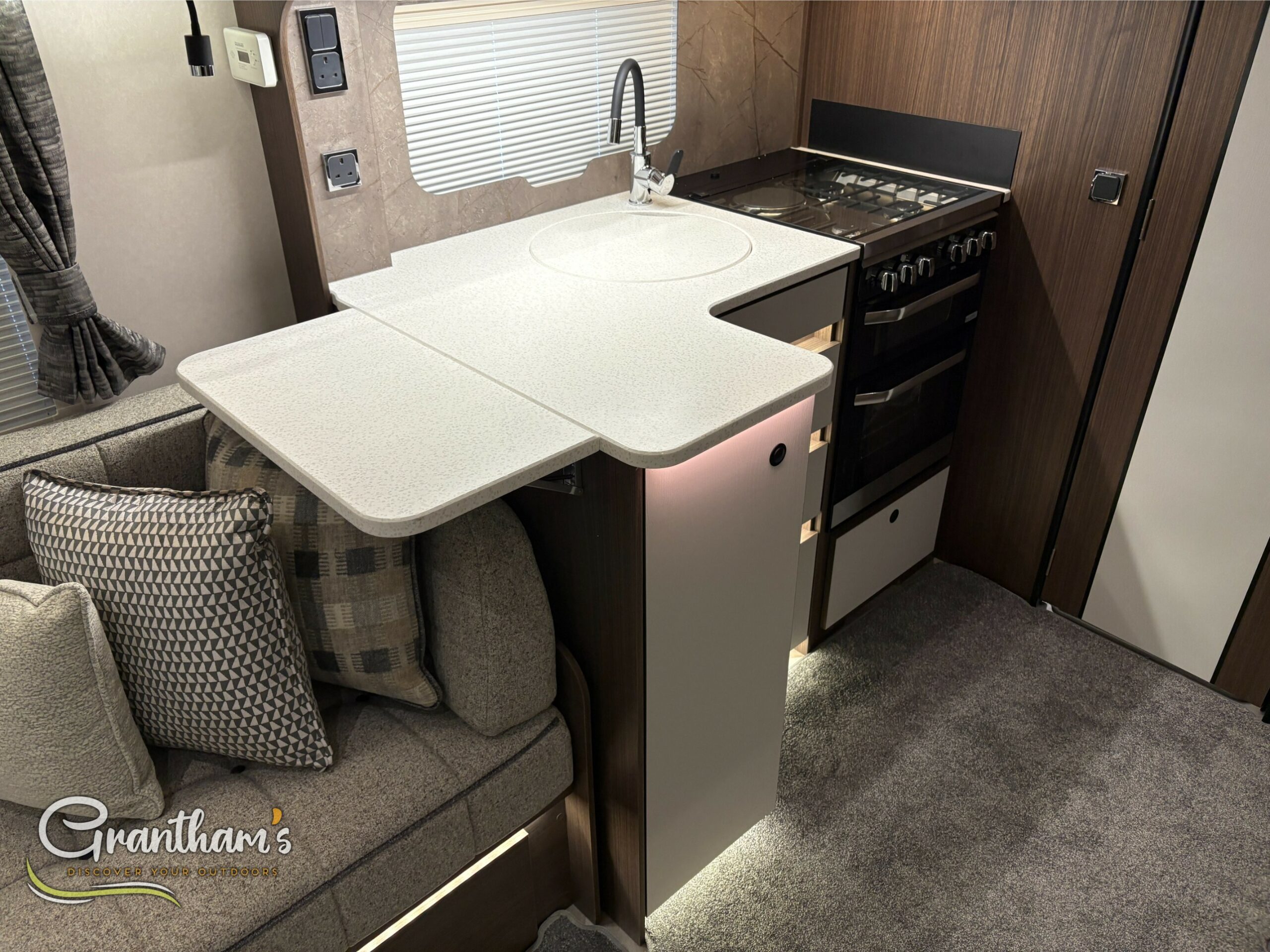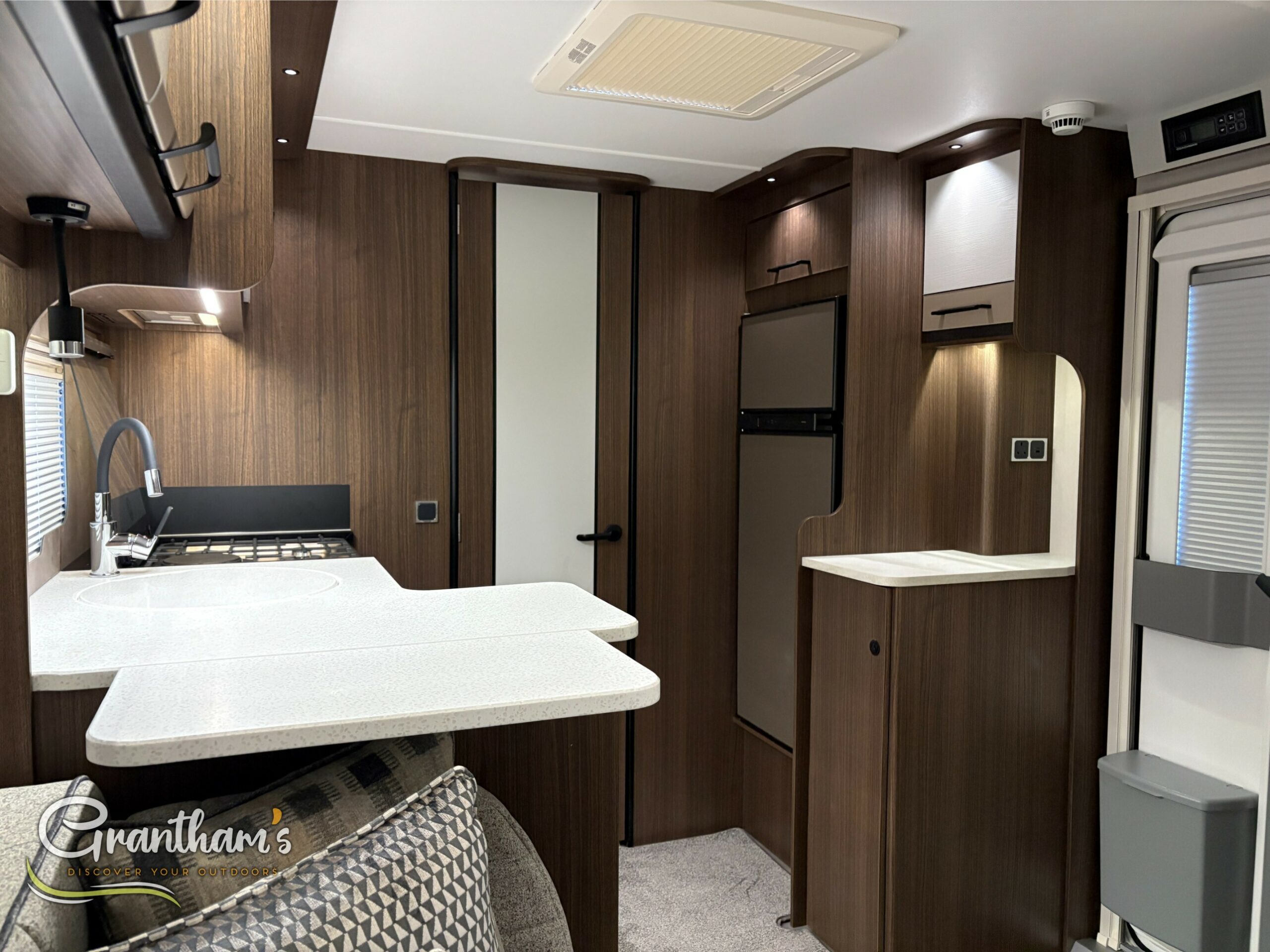 The Coachman Laser 845 Xtra, The Laser 845 Xtra has changed slightly from last year. Not only has it had some graphic changes but it has also been given a Bluetooth speaker system, new floor covering, enhancing the wood and upholstery of the caravan.