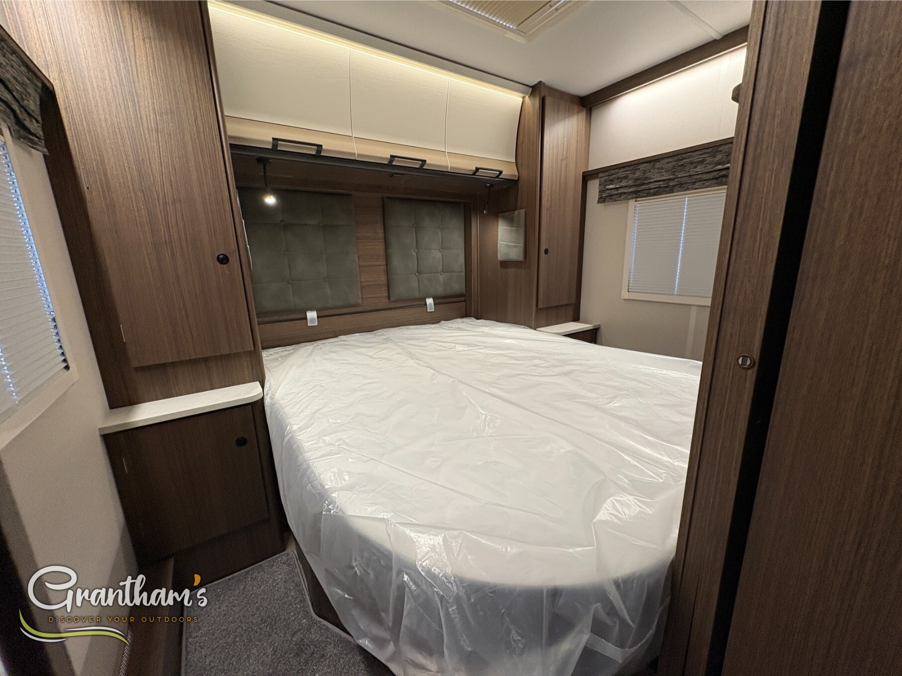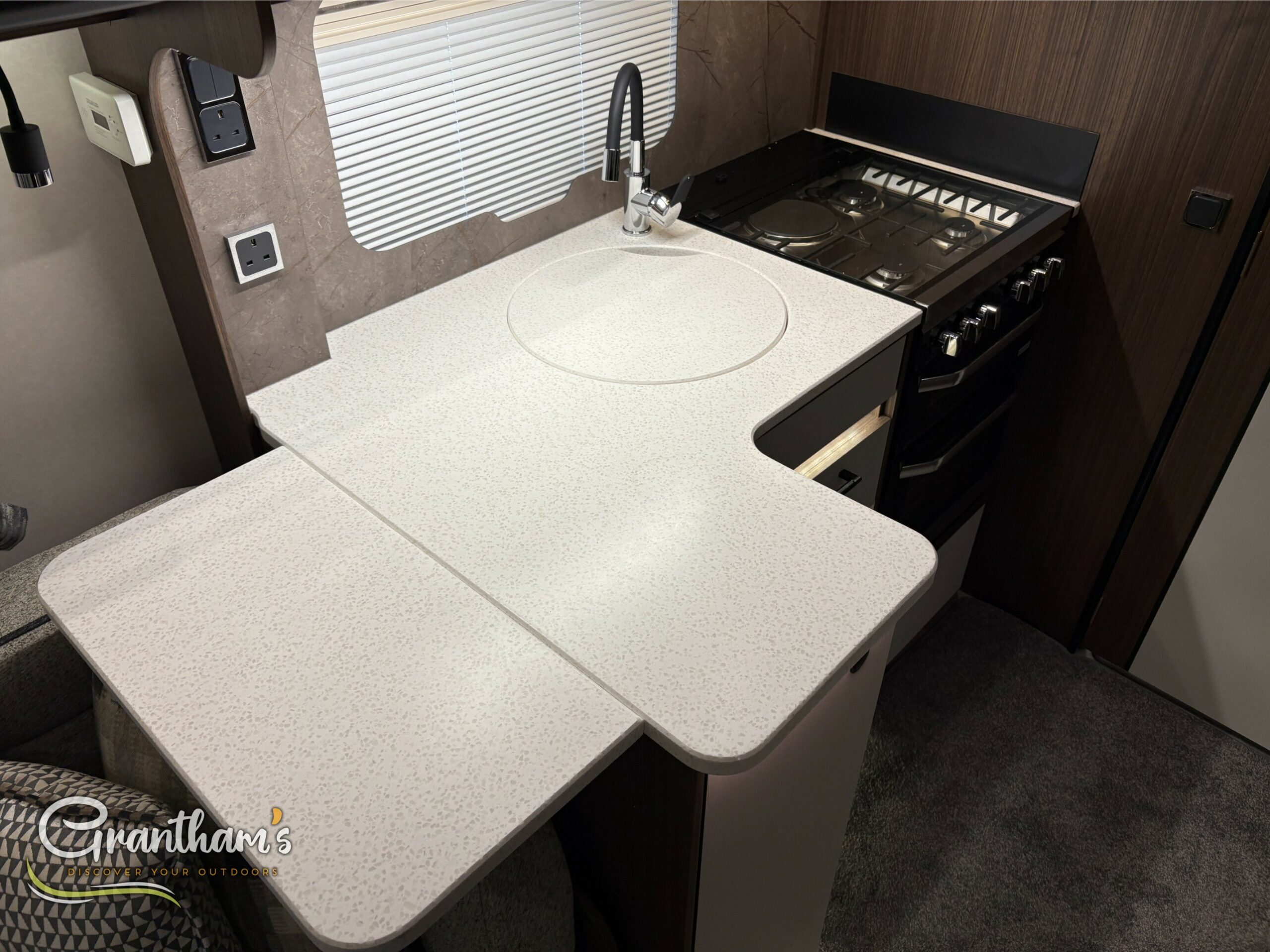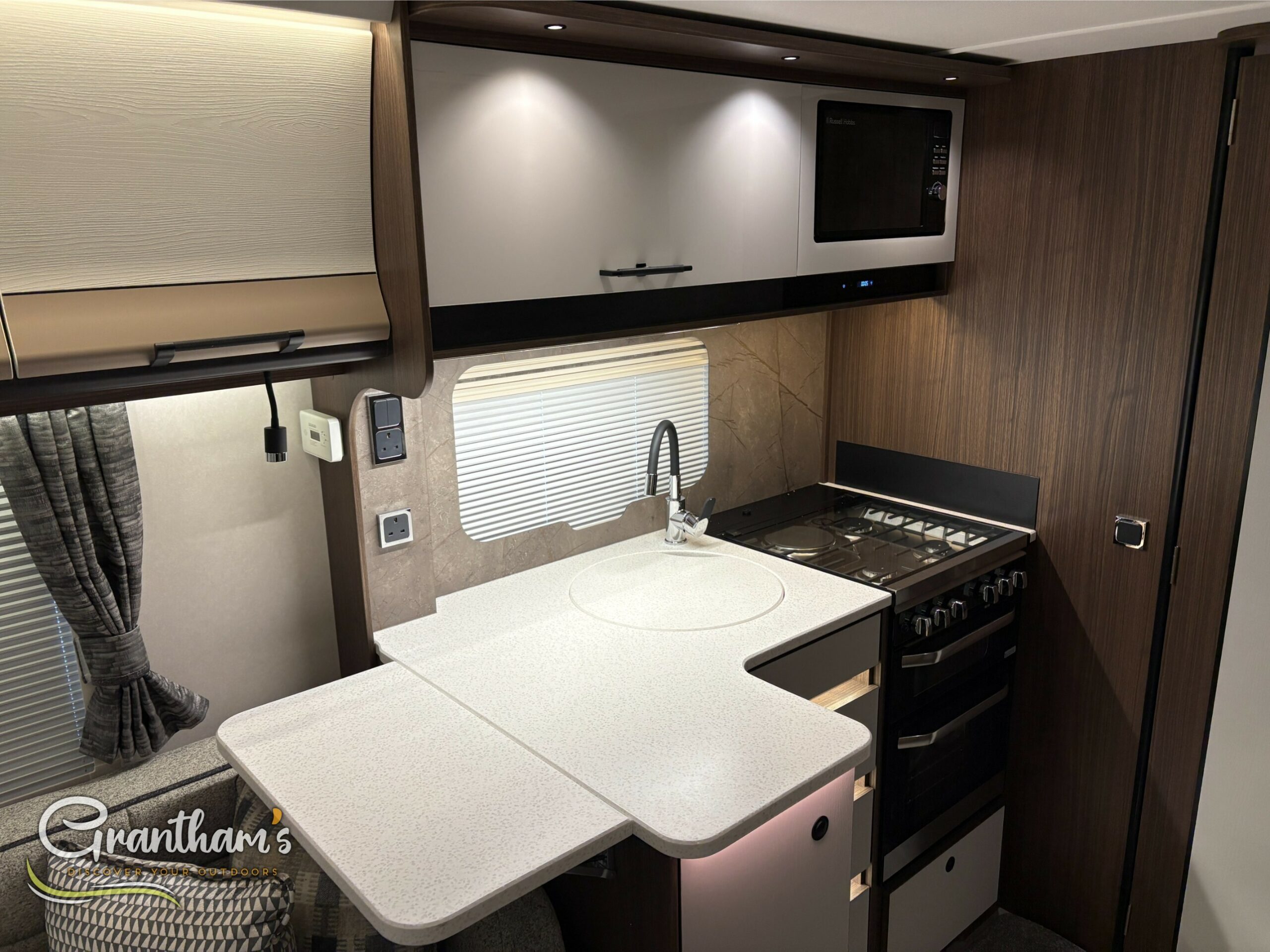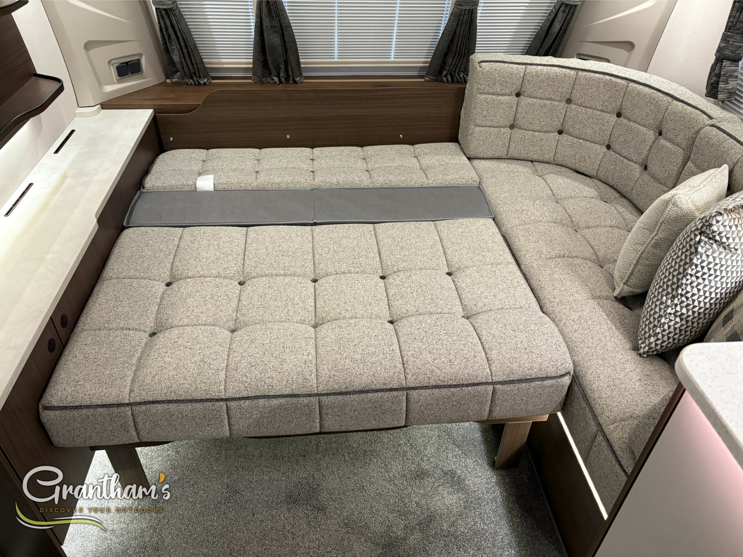 The Coachman Laser 845 Xtra, The Laser 845 Xtra has changed slightly from last year. Not only has it had some graphic changes but it has also been given a Bluetooth speaker system, new floor covering, enhancing the wood and upholstery of the caravan.