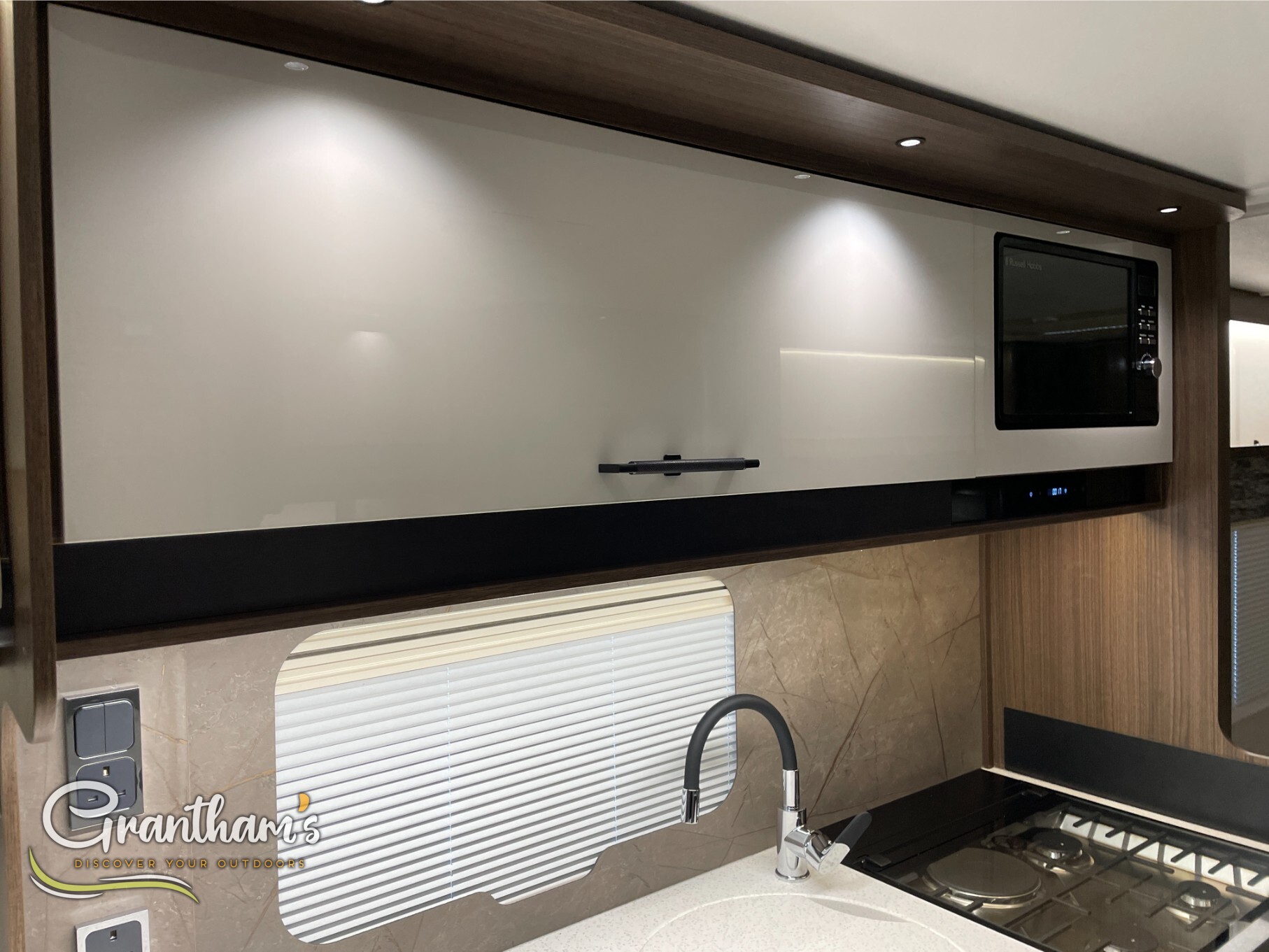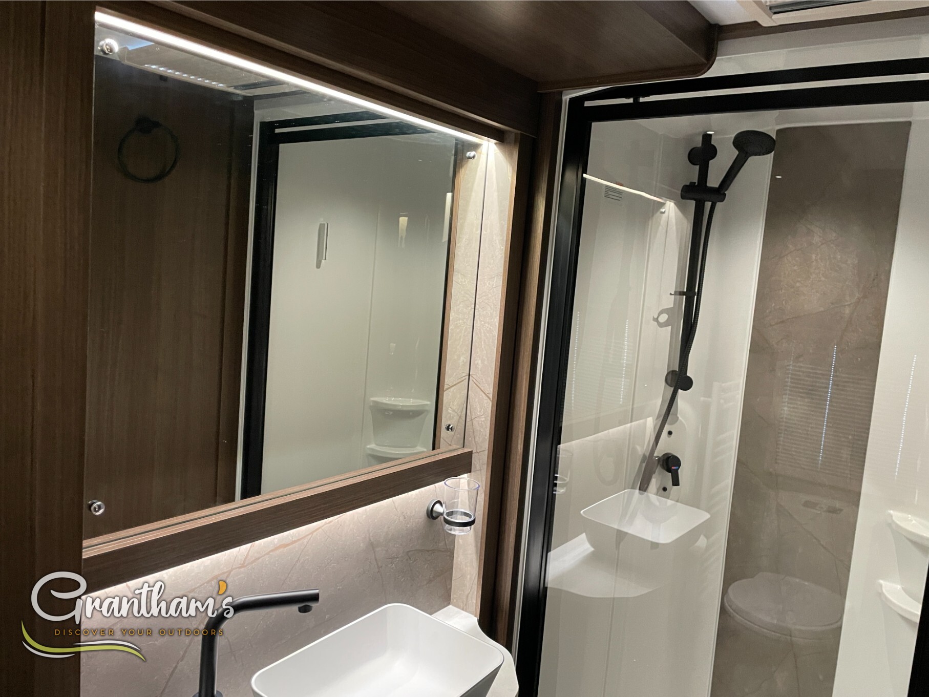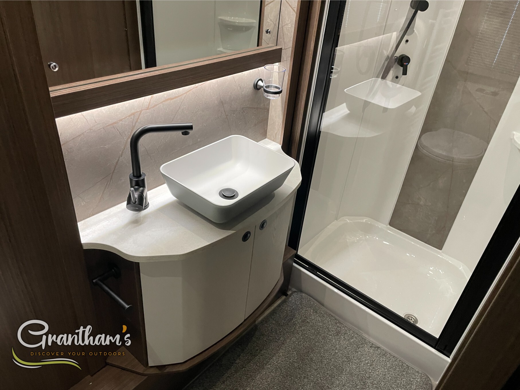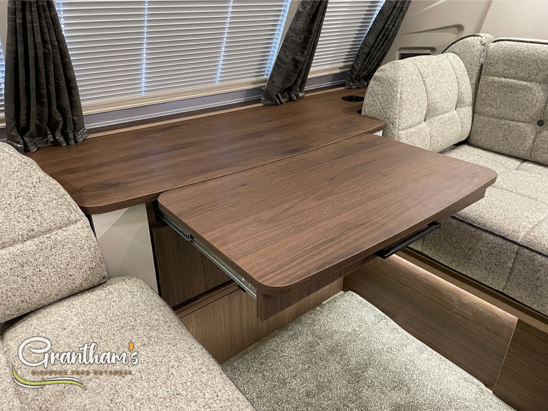 The Coachman Laser 875 Xtra. It’s the more spacious sister of the best selling model the Laser 575 Xtra… What makes it more spacious, well it’s on a twin axle chassis giving it more length allowing for extra luxuries such as a longer kitchen worktop space, extra worktop space near the door with the addition of a under counter storage locker, slightly more worktop space on the corner unit in the bedroom, and of course more floor space. The popular transverse island bed, end washroom layout but bigger.