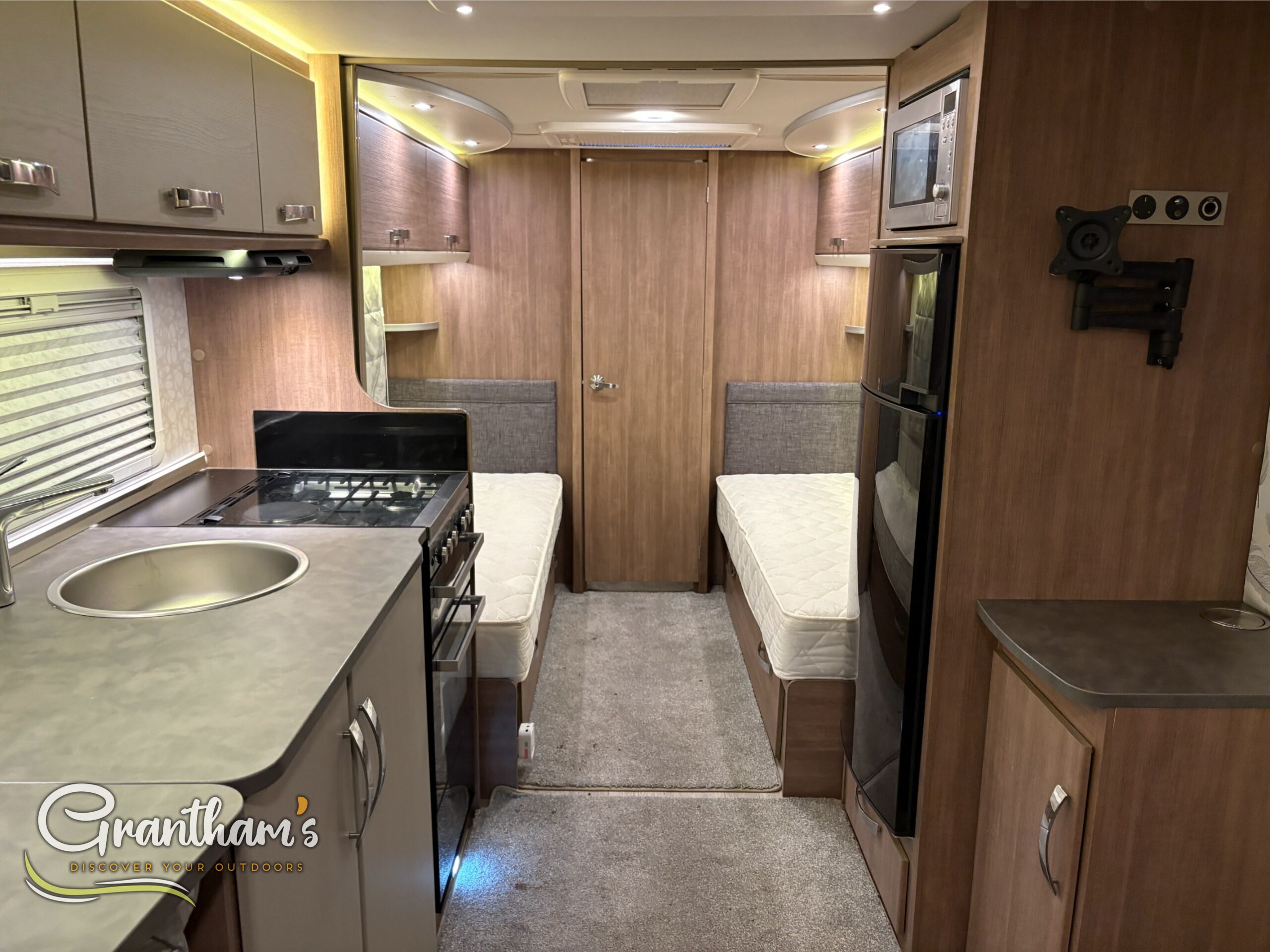 The interior is bright and modern, offering a luxurious lounge, well-appointed kitchen, generously sized fixed single beds, and a spacious end washroom complete with separate shower – all crafted with Lunar’s premium finish and attention to detail.