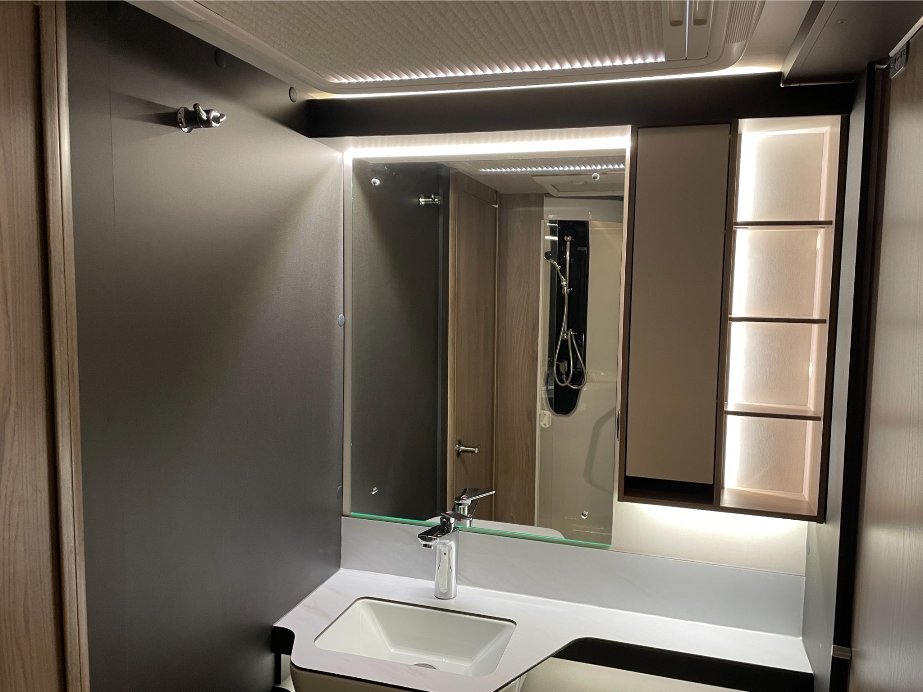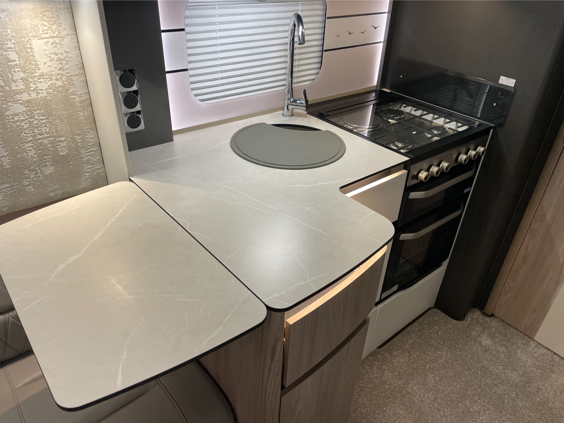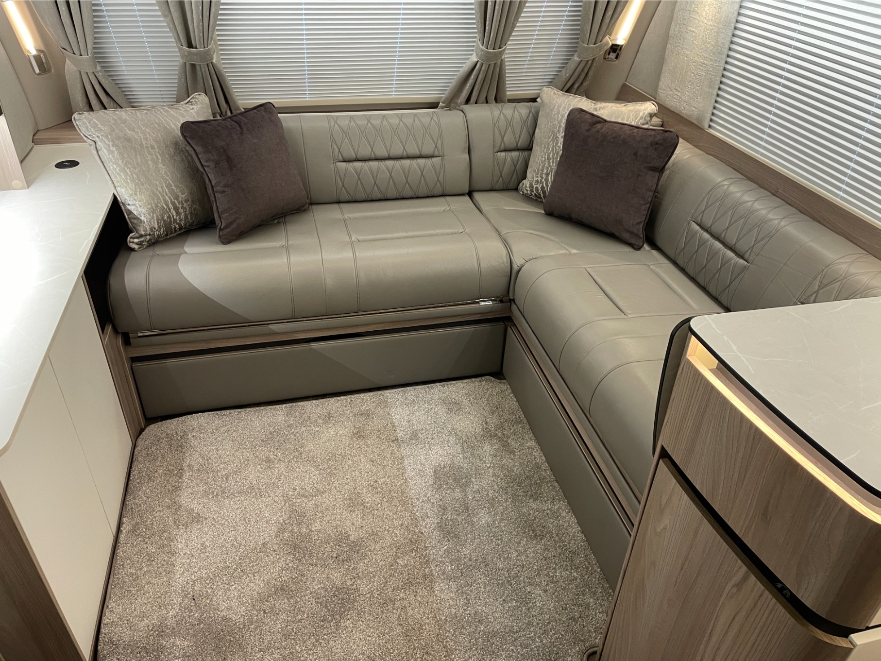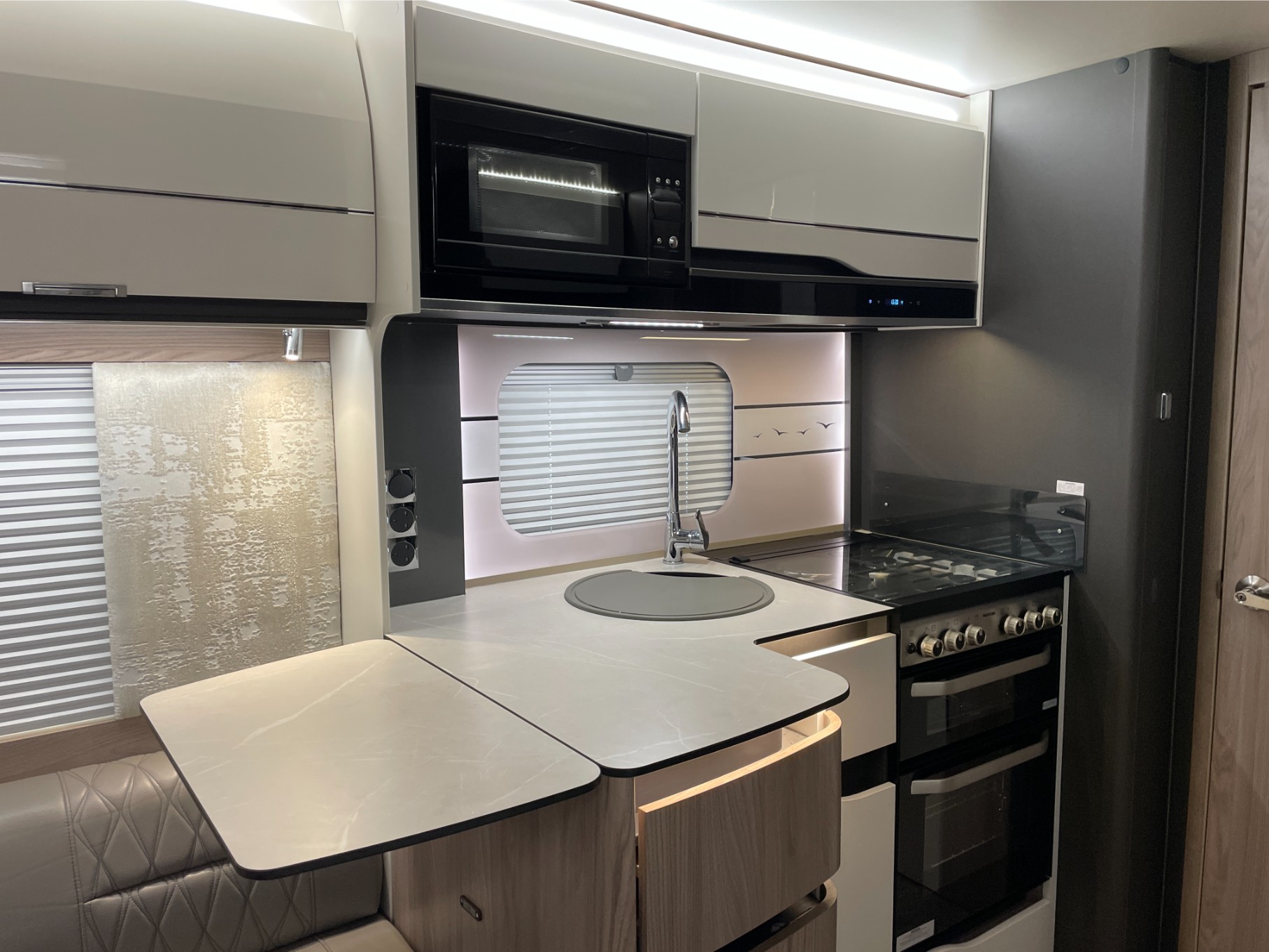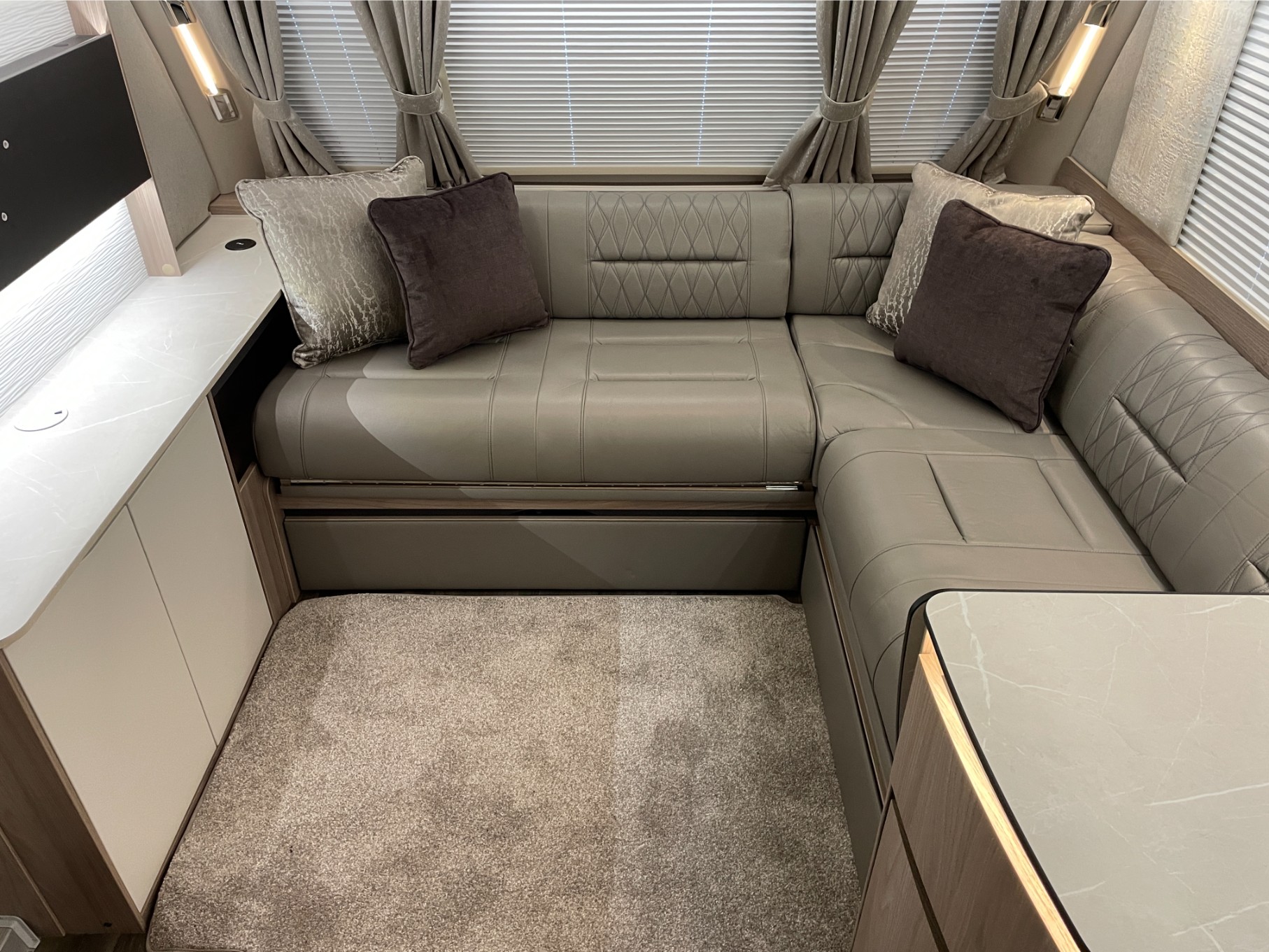 Inside, you’ll find plush soft furnishings, quality cabinetry, and a panoramic sunroof that fills the space with natural light. The spacious mid-washroom offers a separate shower and ample storage, while the private rear bedroom with its luxurious island bed provides a true home-from-home experience.
