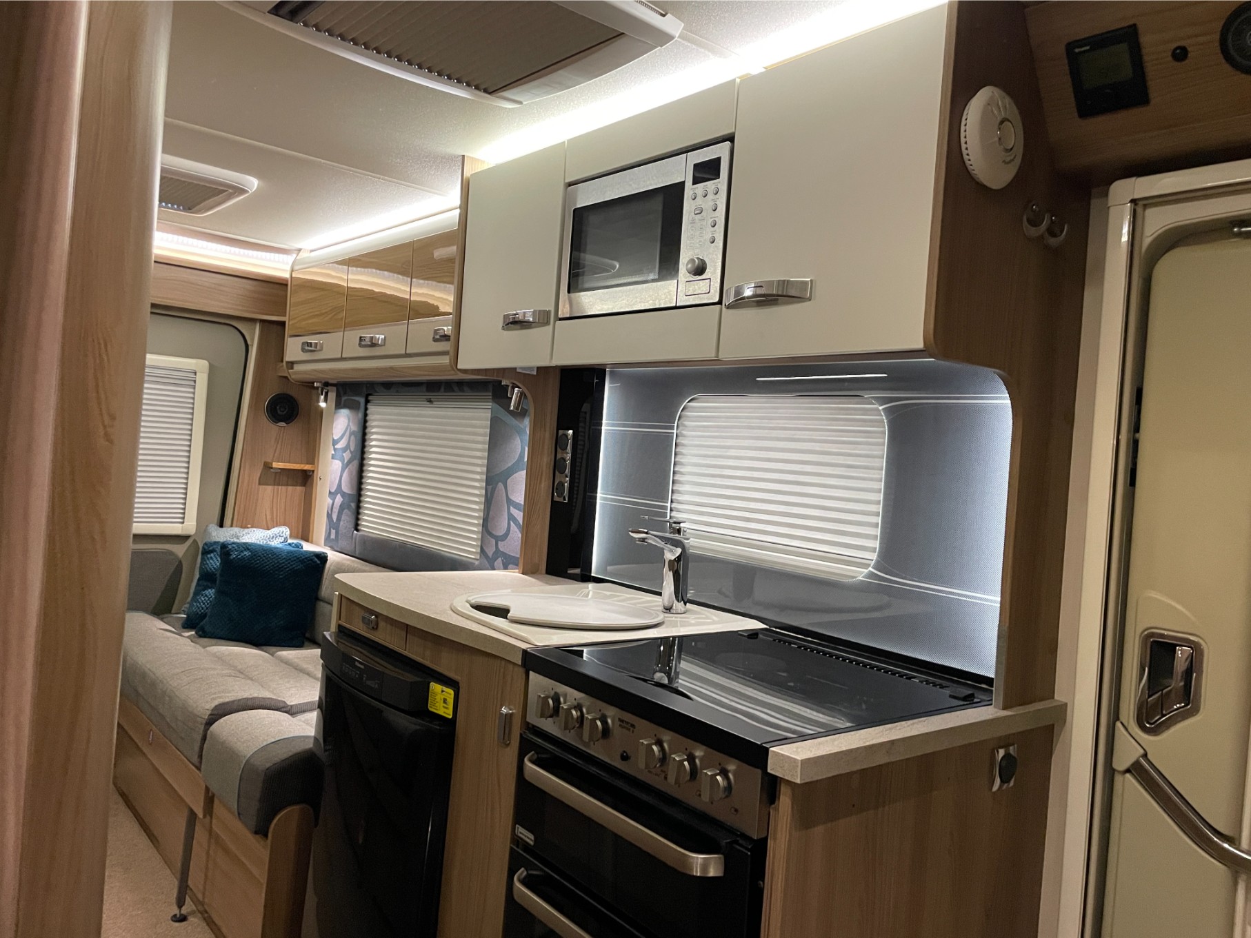 Despite its compact footprint, the Rio 320 is packed with features designed for all-season touring. Stay warm and cosy with efficient blown-air heating. Enjoy off-grid flexibility thanks to the fitted solar panel, keeping leisure batteries topped up wherever you roam. Extend your living space with the roll-out awning, ideal for alfresco dining or relaxing in shade. Manoeuvring is stress-free with the built-in reversing camera, giving you confidence in tight spots and campsites.