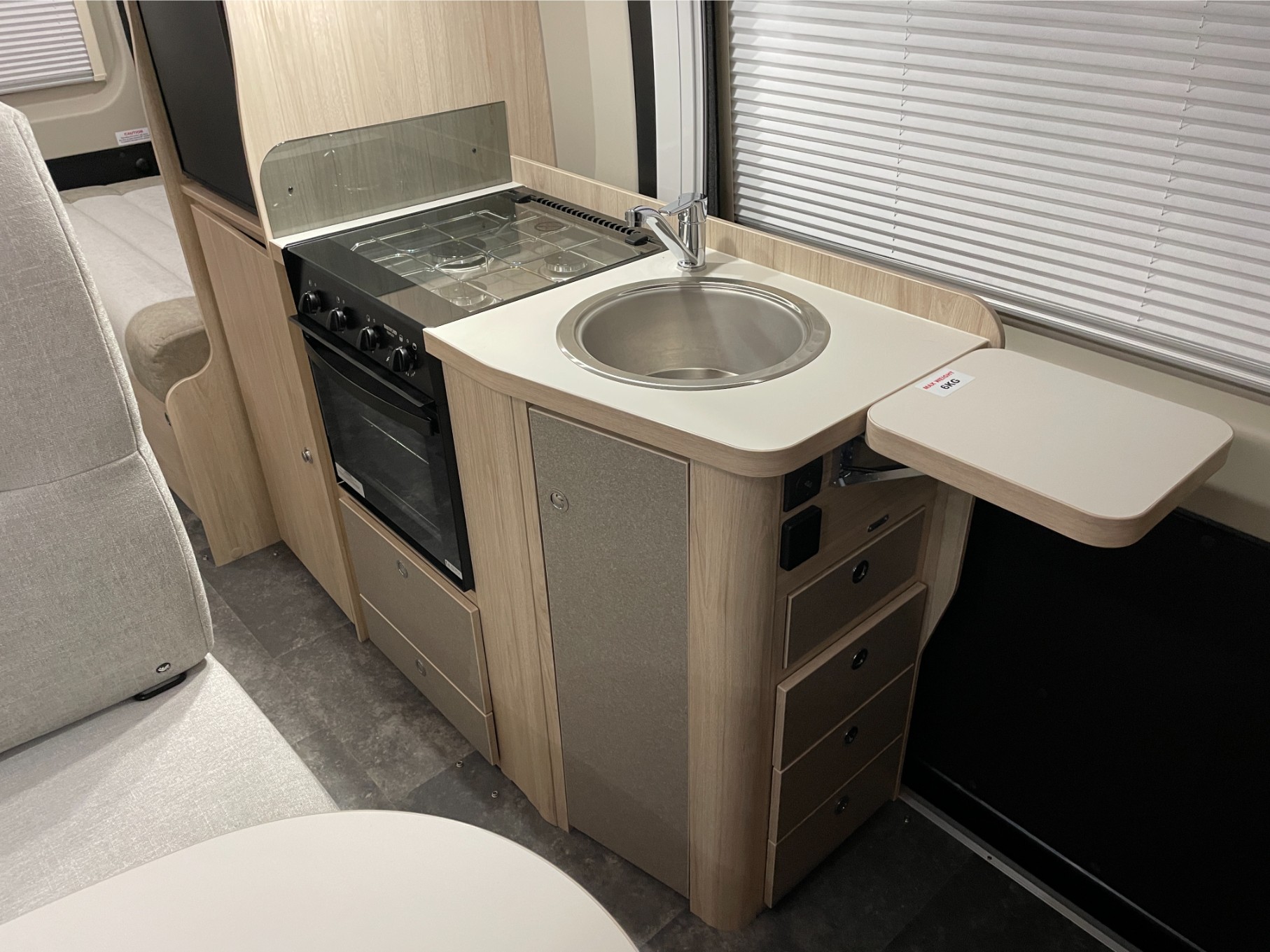 Enjoy year-round touring comfort thanks to efficient blown-air heating, while the onboard gas tank provides convenience for cooking and heating on the go. The roll-out awning extends your living space outdoors — perfect for relaxing in the shade or entertaining. Parking and manoeuvring are made simple with a built-in reversing camera, giving you confidence on every journey.