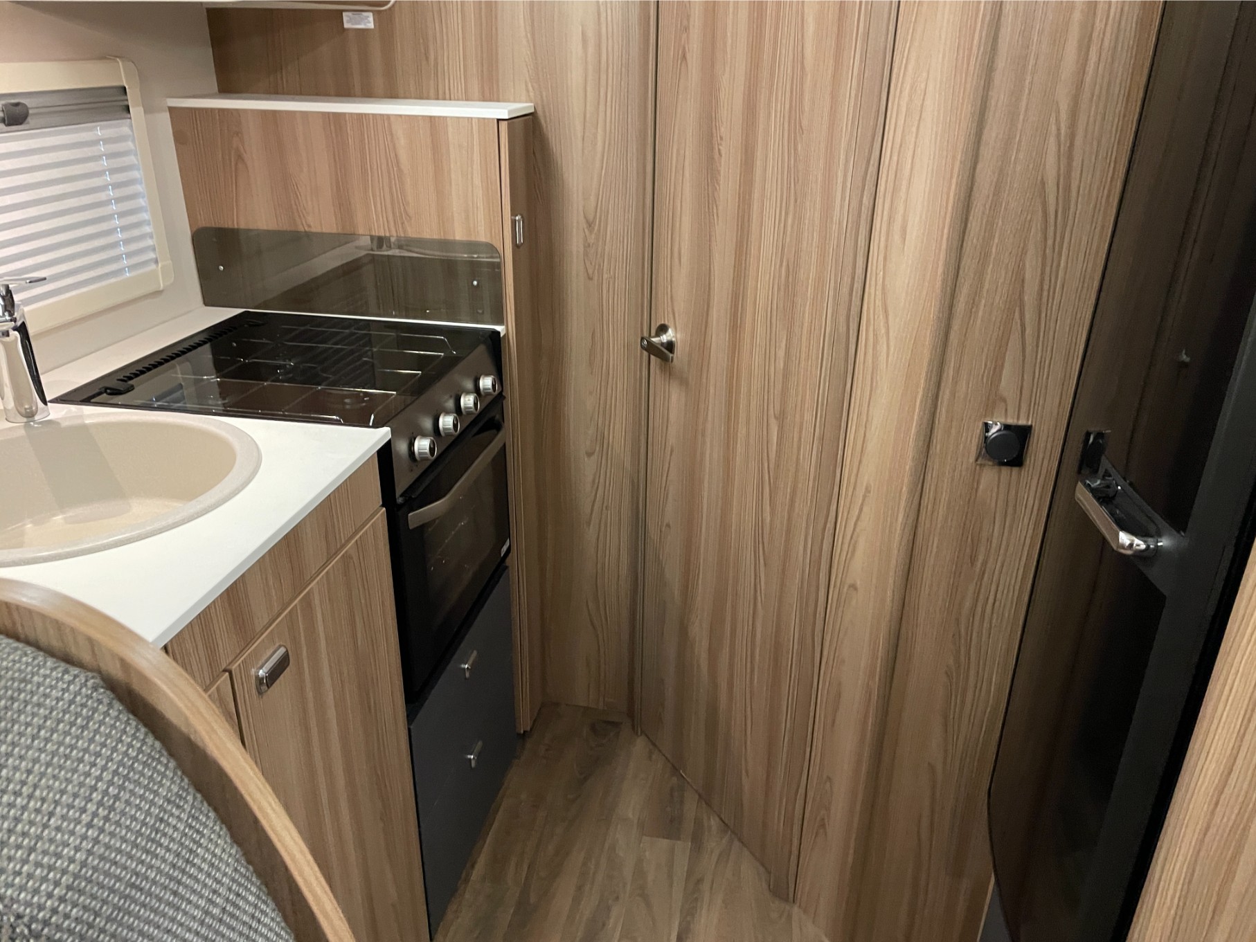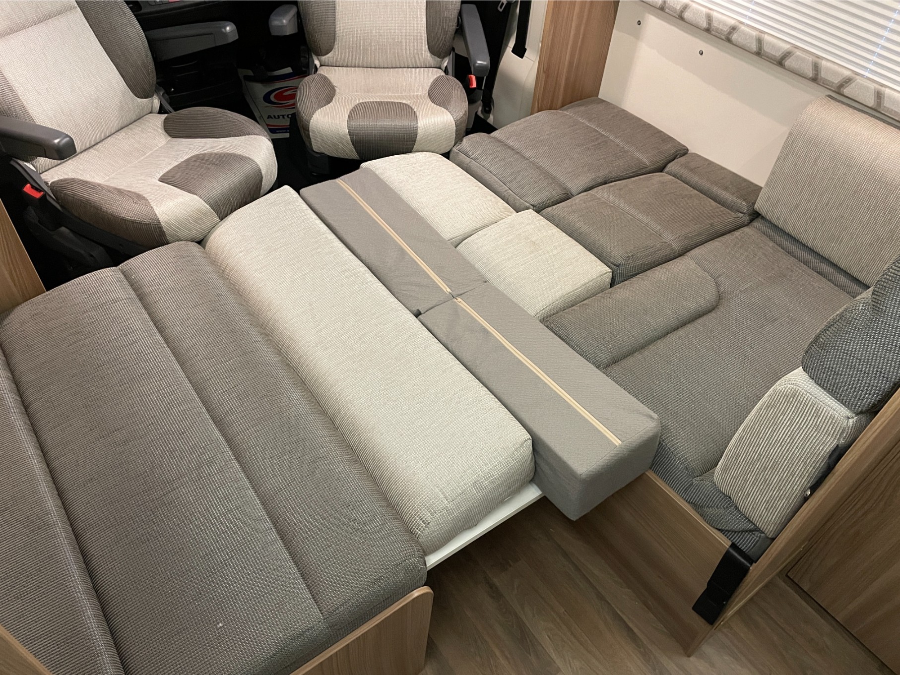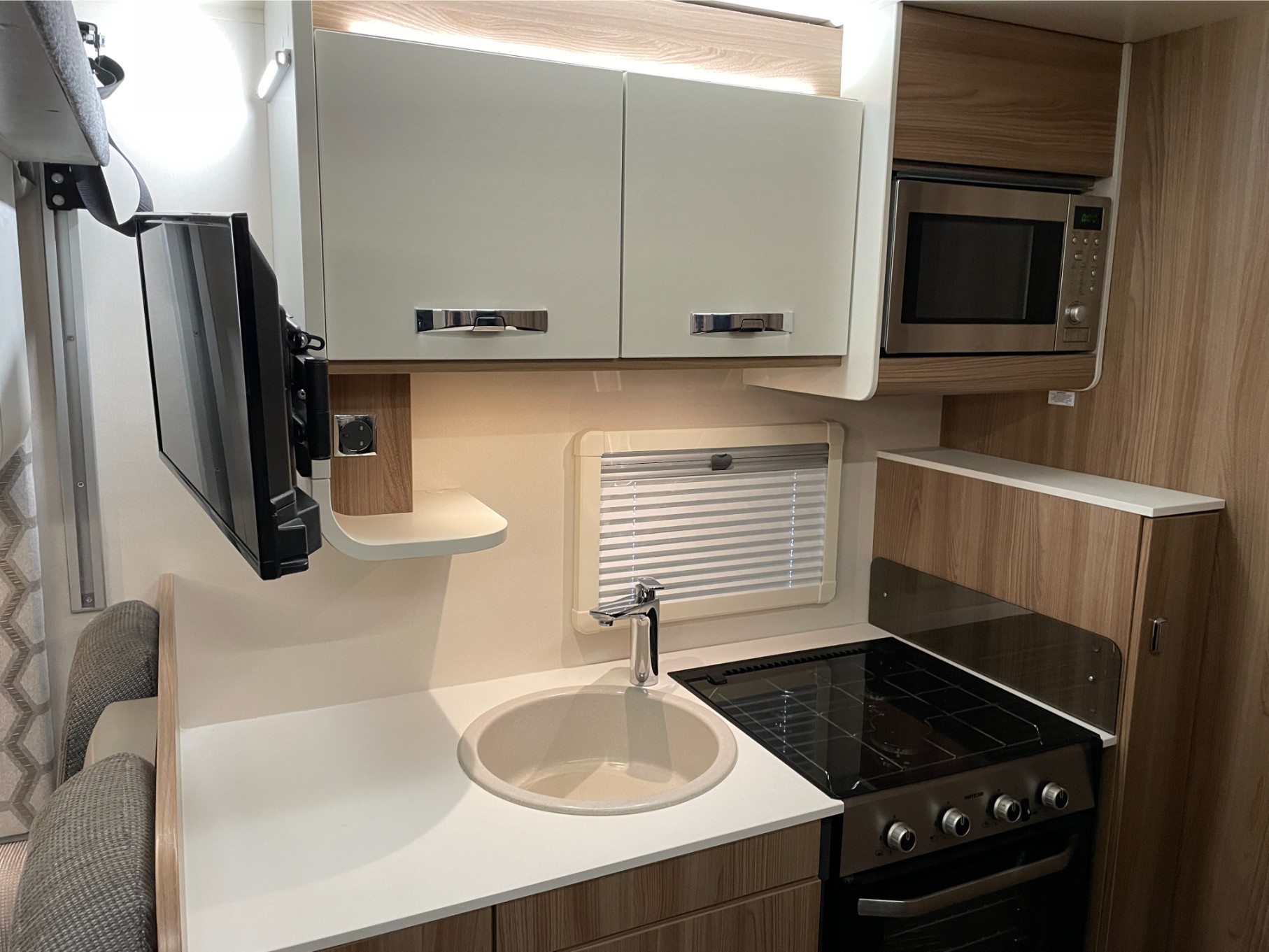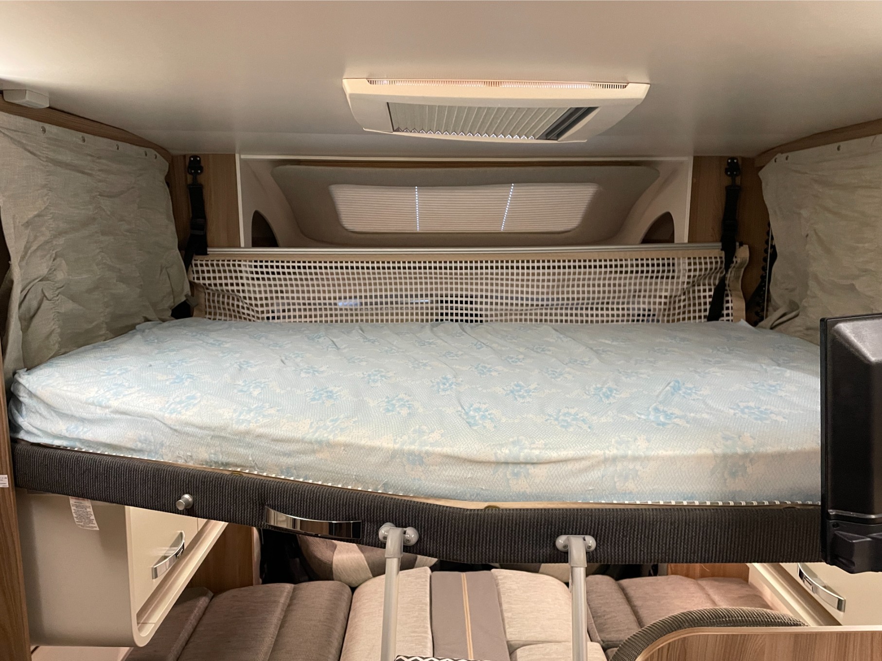 This motorhome is equipped with everything you need for a comfortable journey, including blown air heating to keep you warm on chilly nights. The solar panel keeps your power running efficiently, even when you’re off the grid. The roll-out awning extends your living space, perfect for outdoor relaxation or dining, while the reversing camera makes parking and manoeuvring a breeze.