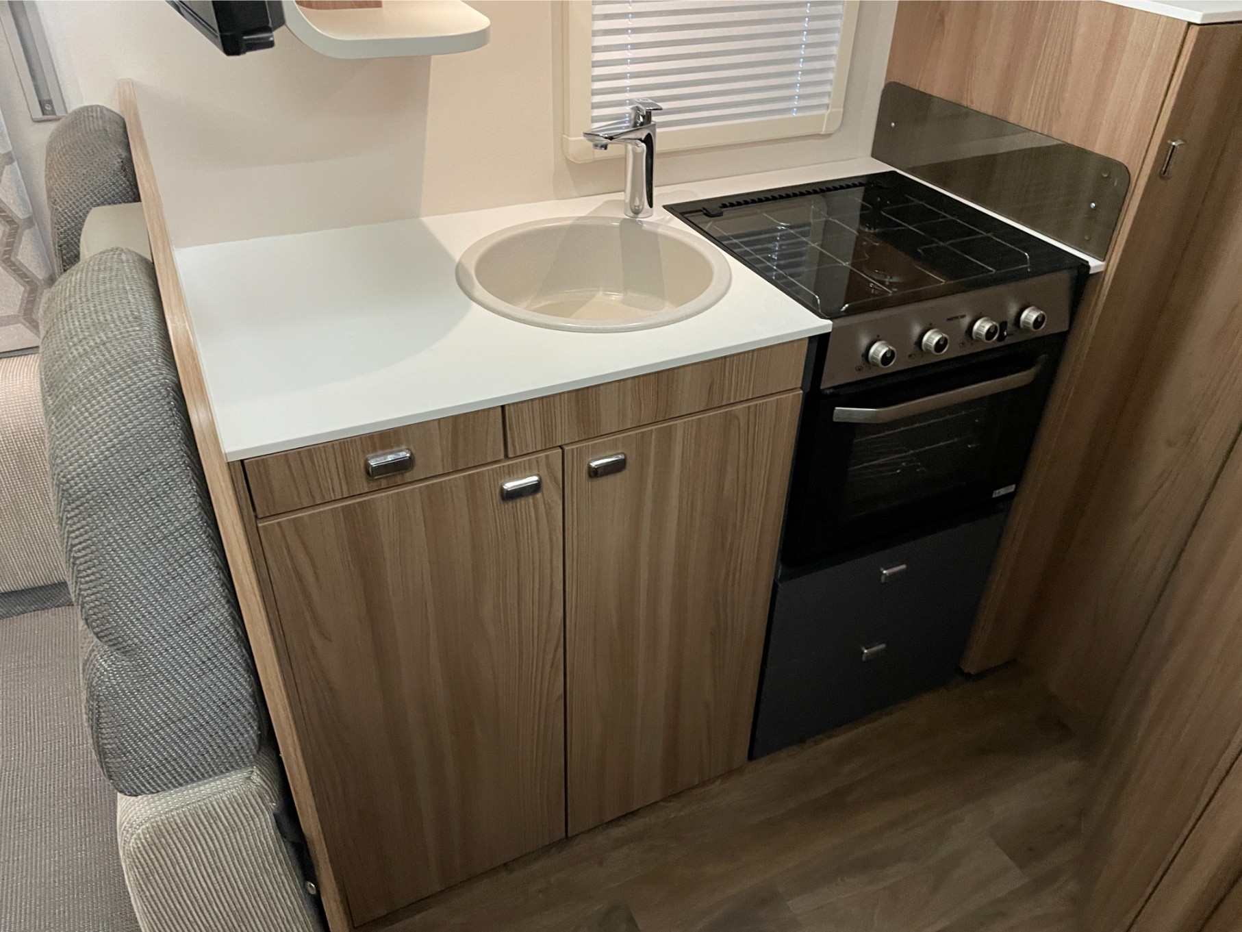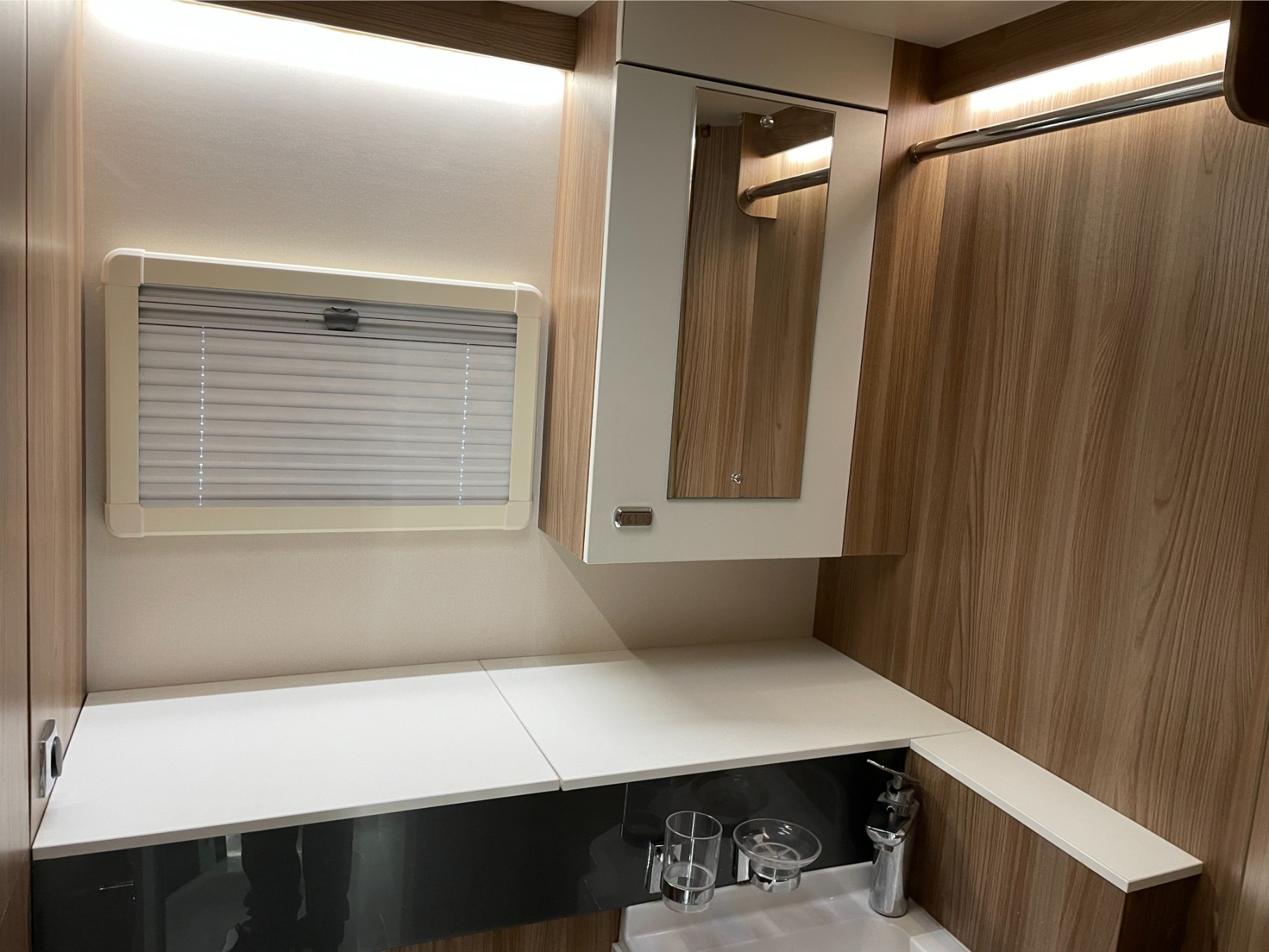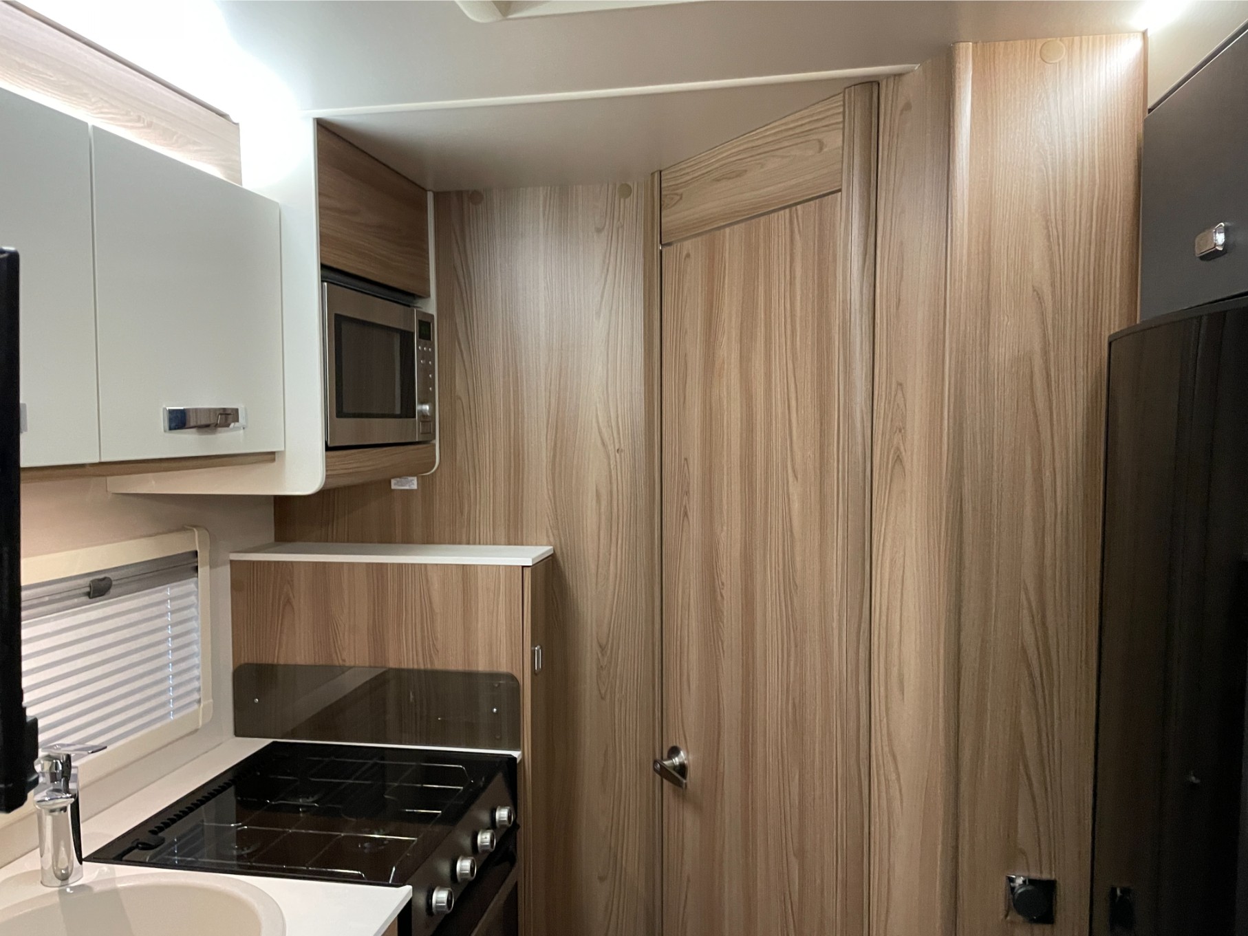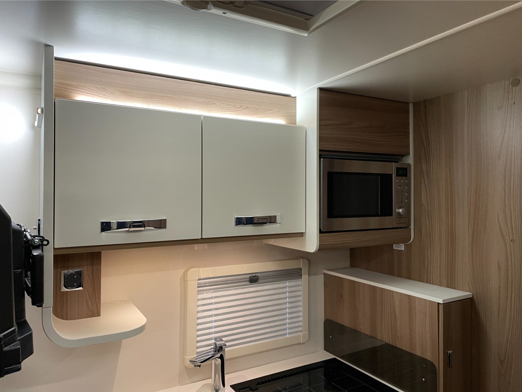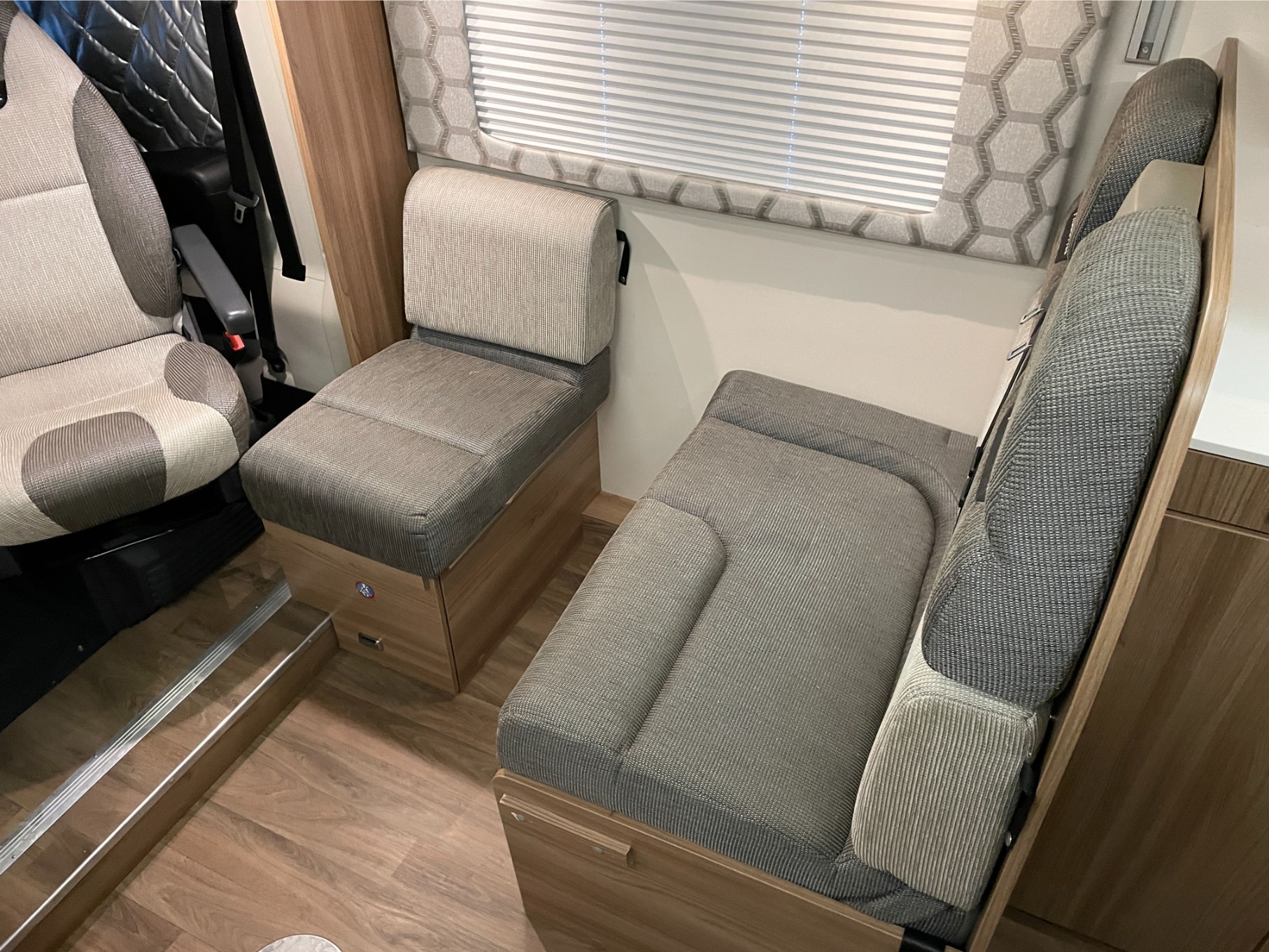 This motorhome is equipped with everything you need for a comfortable journey, including blown air heating to keep you warm on chilly nights. The solar panel keeps your power running efficiently, even when you’re off the grid. The roll-out awning extends your living space, perfect for outdoor relaxation or dining, while the reversing camera makes parking and manoeuvring a breeze.