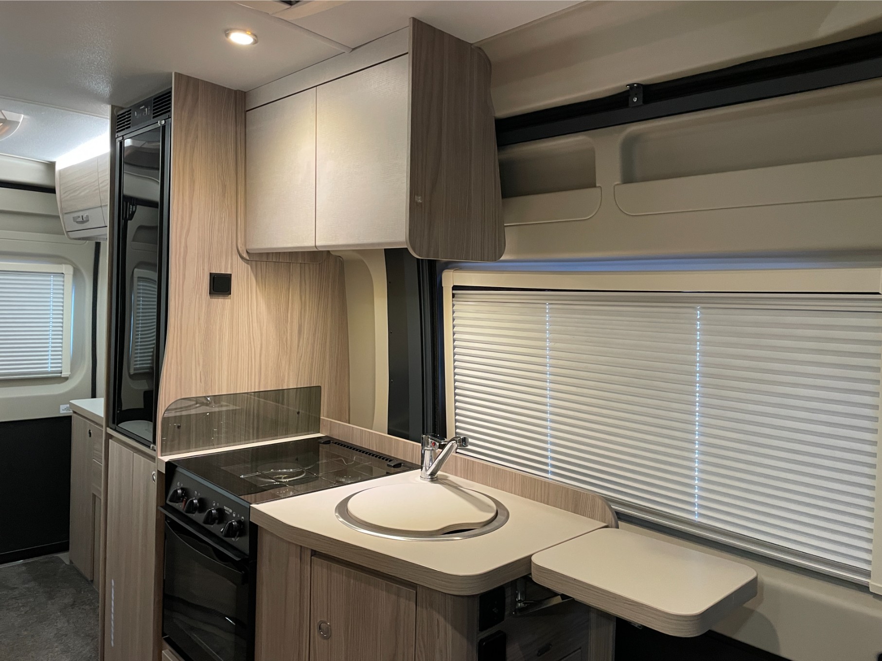 Designed for life on the road, the CV60 is equipped with a blown air heating system to keep you warm in all seasons. The well-appointed kitchen includes an induction hob, fridge, sink, and ample storage for all your essentials. Outside, you’ll find a handy roll-out awning to extend your living space and a fitted bike rack for bringing your cycles along on every trip.